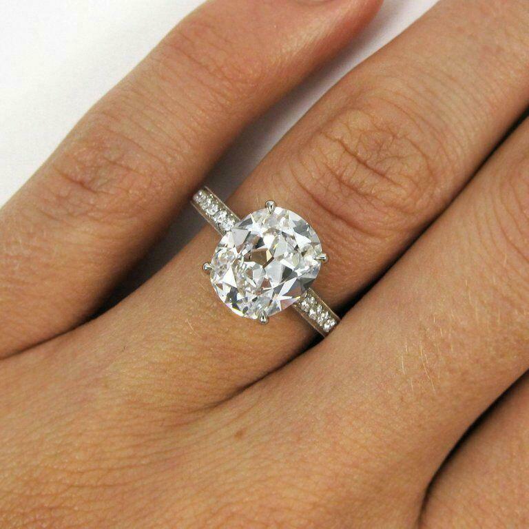 3.5ct Elongated Cushion Cut Diamond Accent Solitaire Ring 18K White Gold Finish