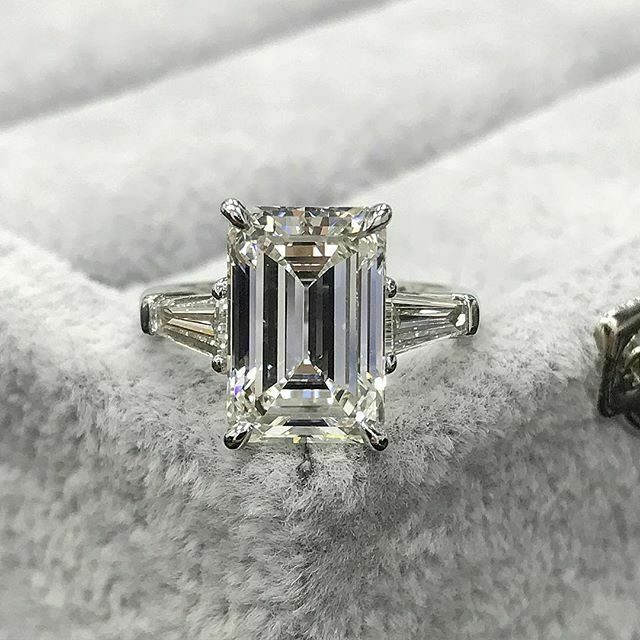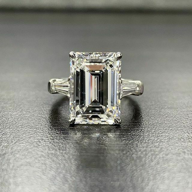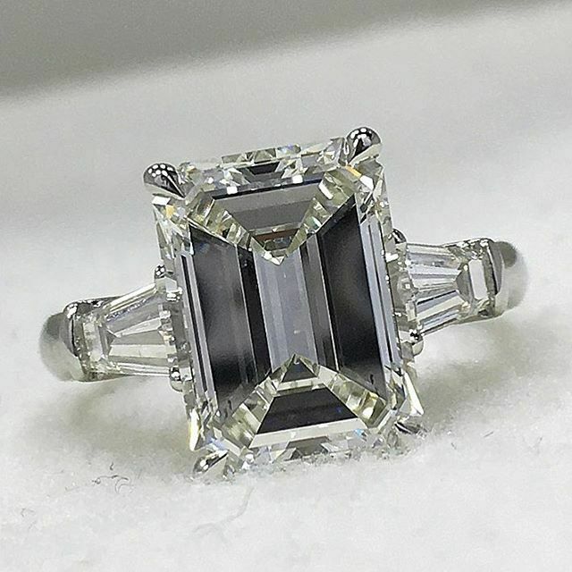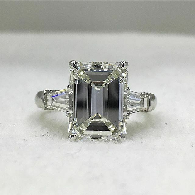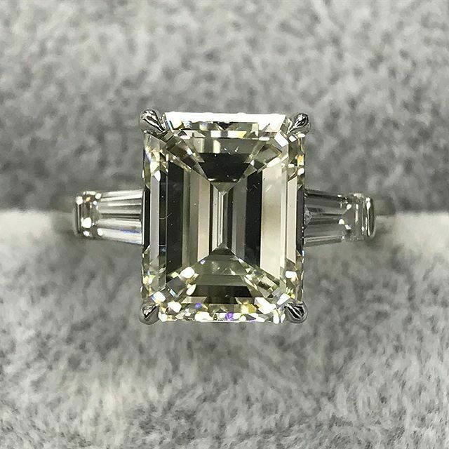 3.5Ct Emerald Cut Diamond Baguette Accents Engagement Ring 14K White Gold Finish