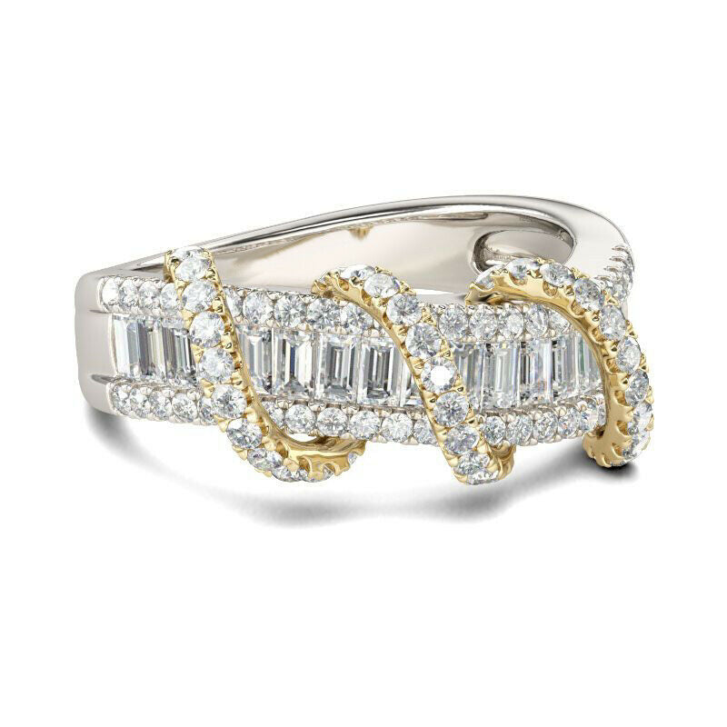 3.5Ct Emerald Cut Diamond Wind Rope Design Engagement Ring 14K White Gold Finish