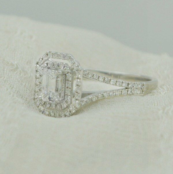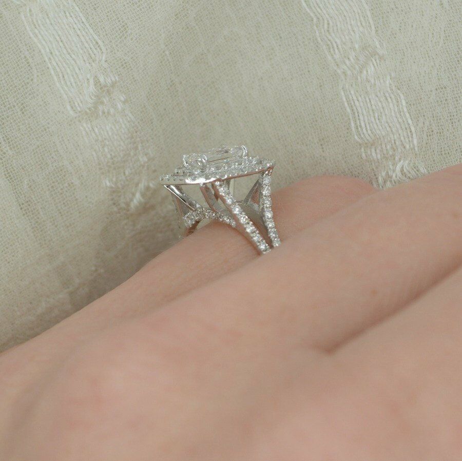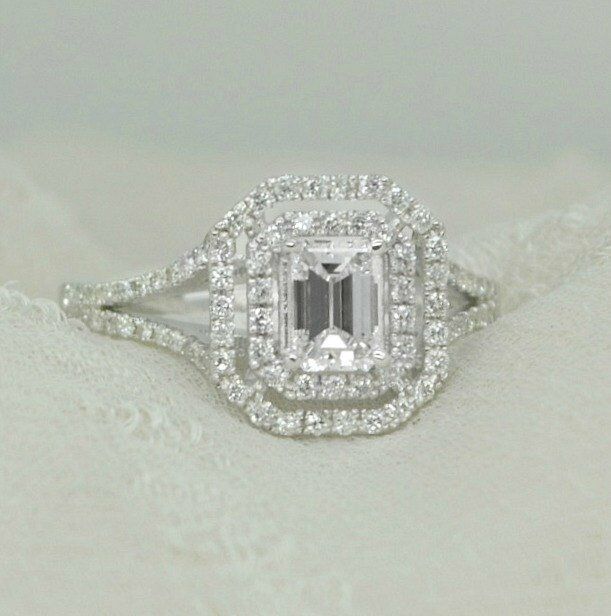 3.5ct Emerald Cut VVS1 Diamond Double Halo Engagement Ring 14k White Gold Finish