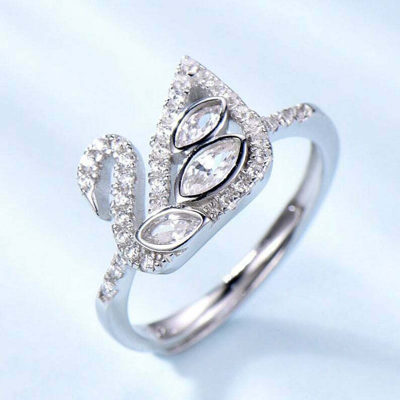 3.5ct Marquise Cut VVS1D Diamond Duck Swan Engagement Ring 14k White Gold Finish