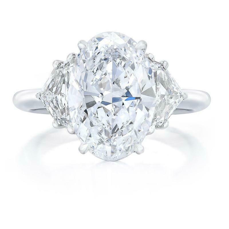 3.5ct Oval Cut Diamond Engagement Ring 14k White Gold Finish Solitaire Trilogy