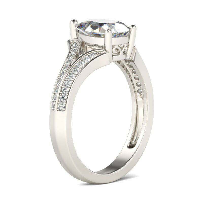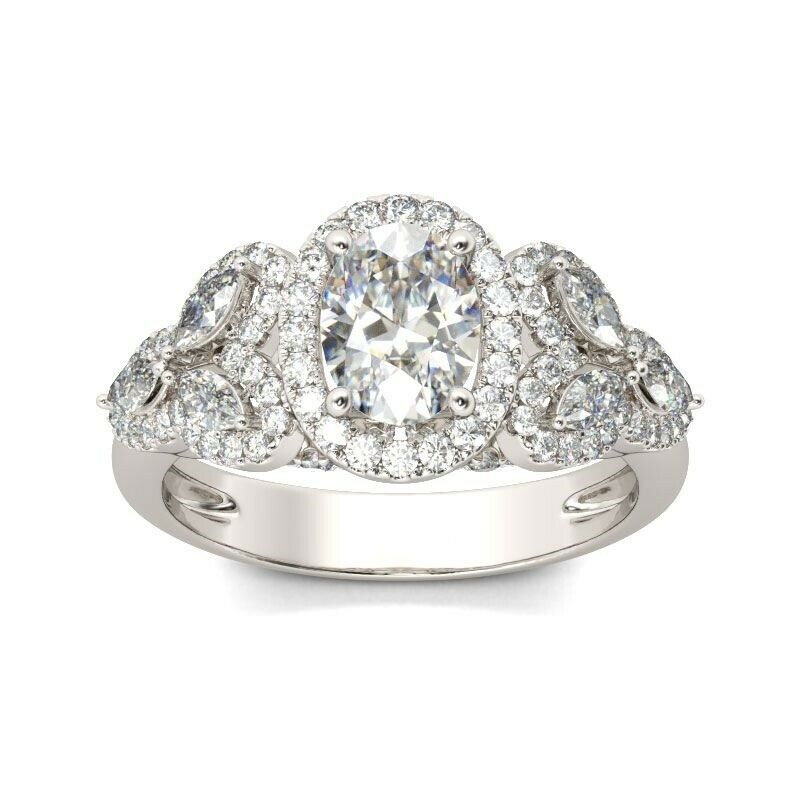 3.5Ct Oval Cut Diamond Leaf Inspired Halo Engagement Ring 14K White Gold Finish