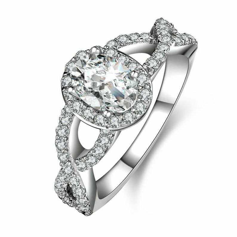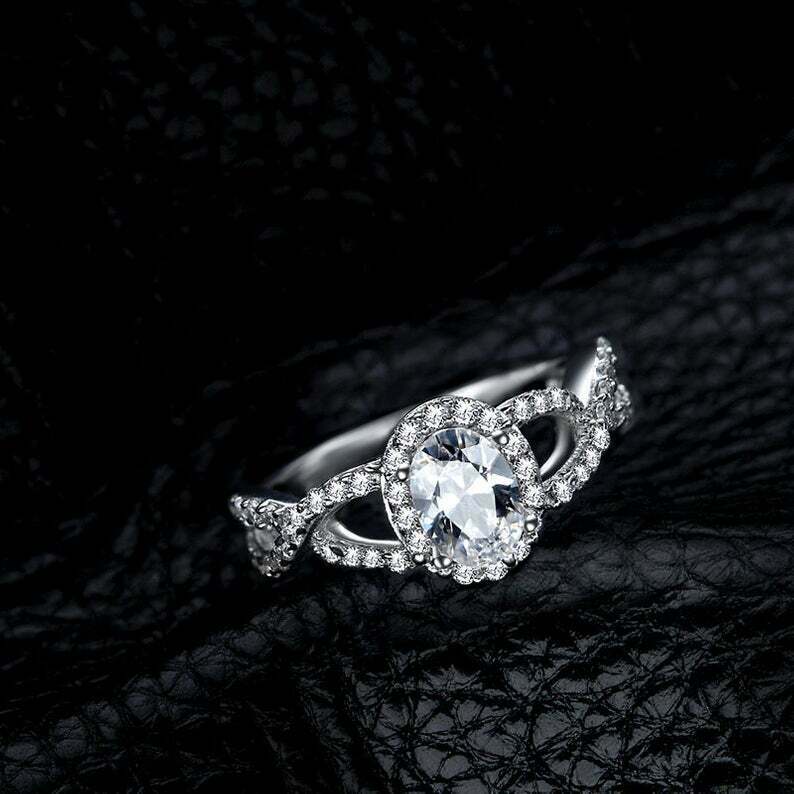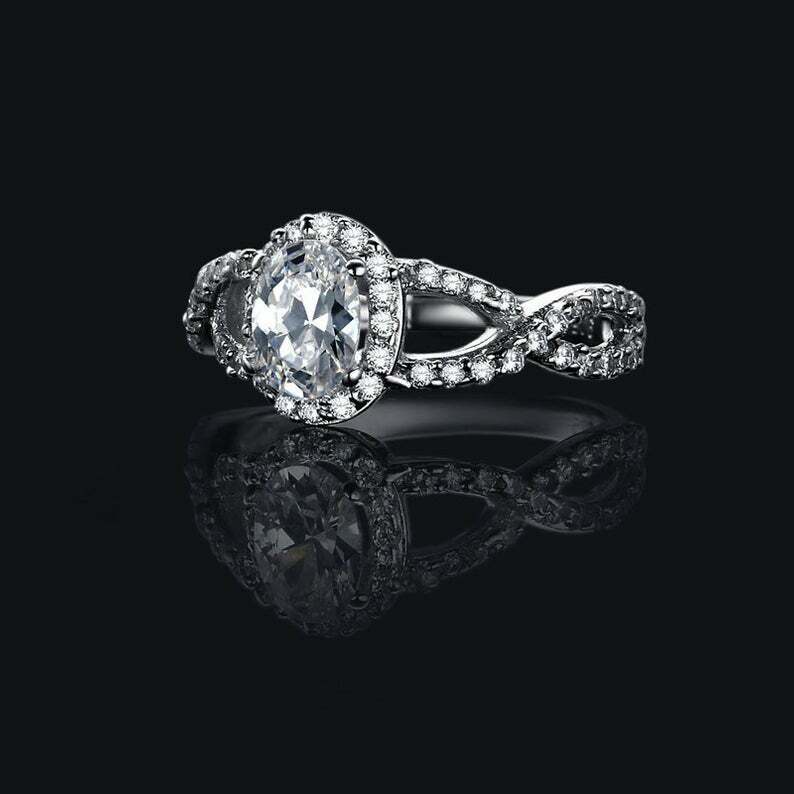 3.5ct Oval Cut Diamond Twist Infinity Shank Solitaire Ring 14k White Gold Finish