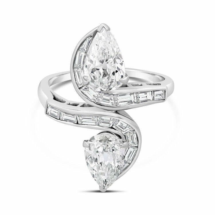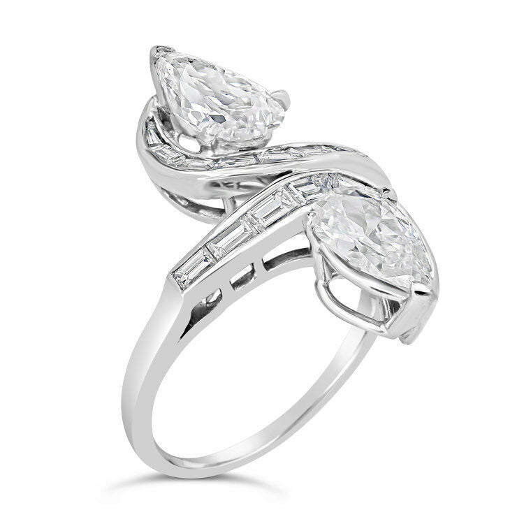 3.5ct Pear Baguette Cut Diamond ByPass Engagement Ring 14k White Gold Finish