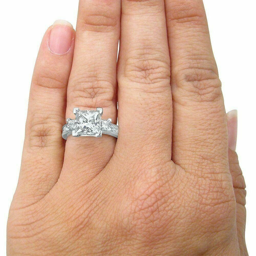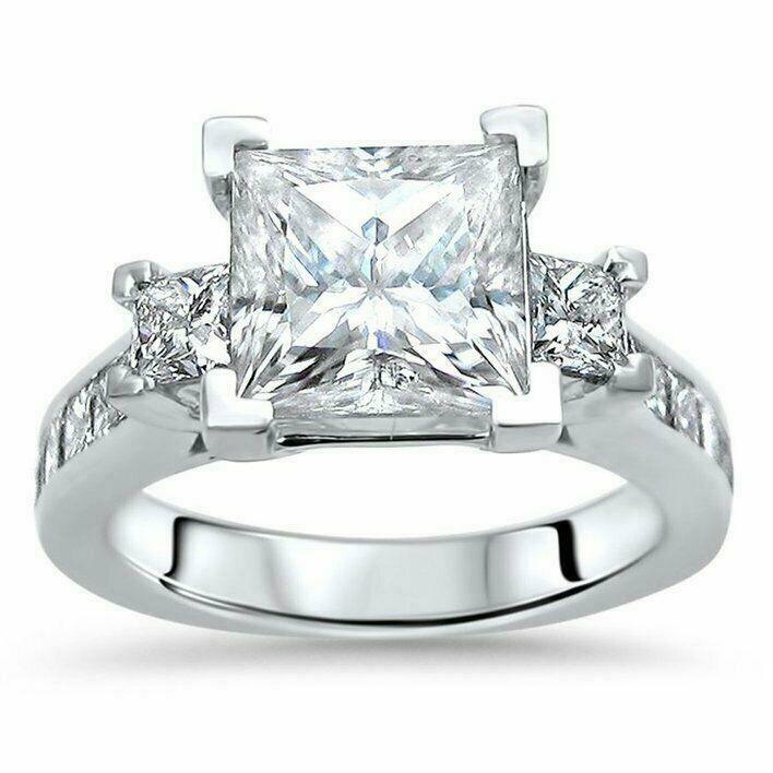 3.5ct Princess Diamond Solitaire with Accent Trilogy Ring 14K White Gold Over