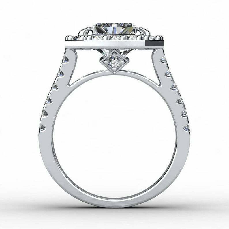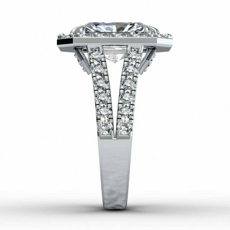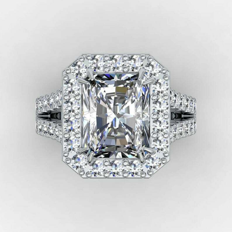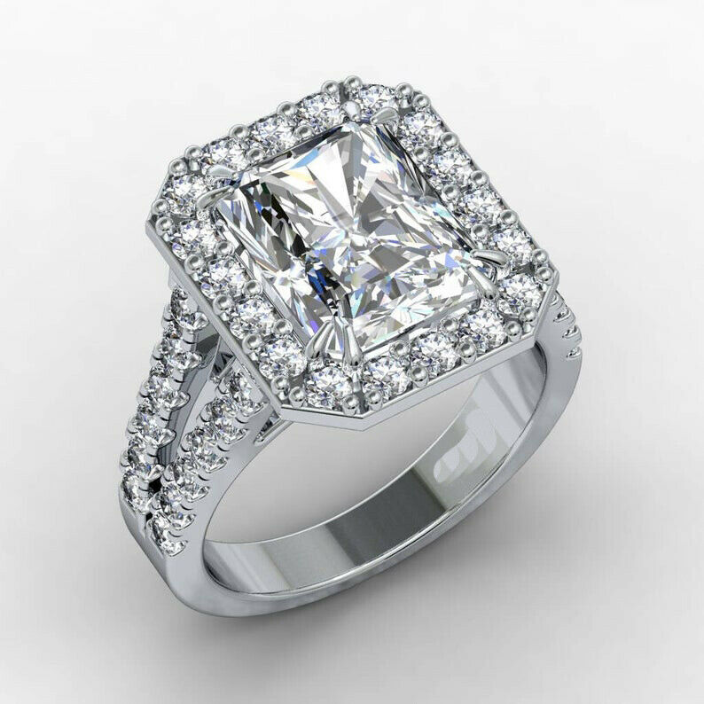 3.5ct Radiant Cut Diamond Engagement Ring Halo Split Shank 14k White Gold Finish