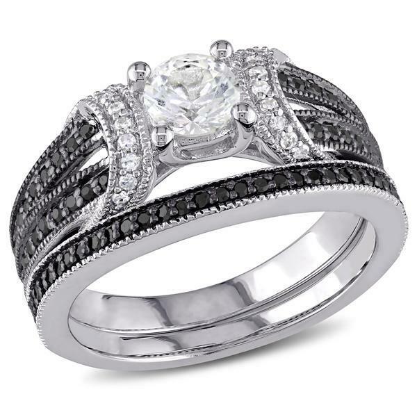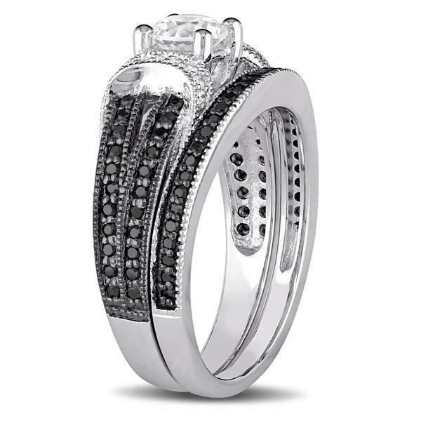 3.5Ct Round Cut Black Diamond Bridal Set Engagement Ring 14K White Gold Finish