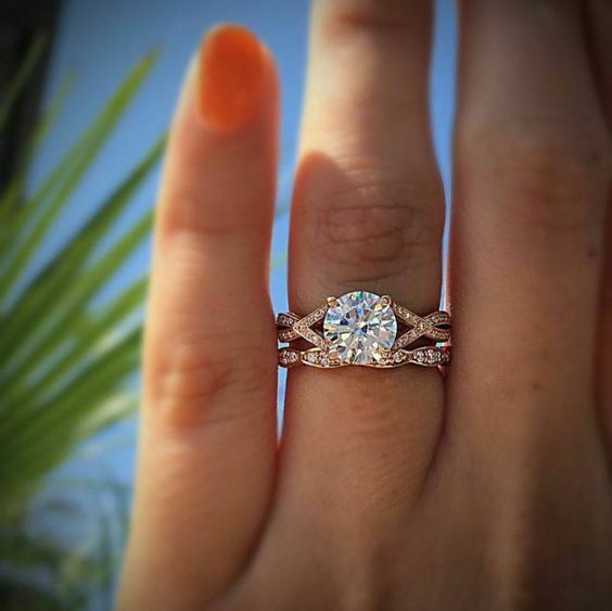 3.5Ct Round Cut Diamond Bridal Set Split Shank Solitaire 14K Rose Gold Finish