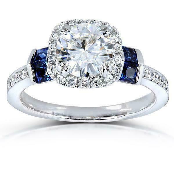 3.5ct Round Cut Diamond Halo Solitaire Sapphire Accents Ring 14K White Gold Over