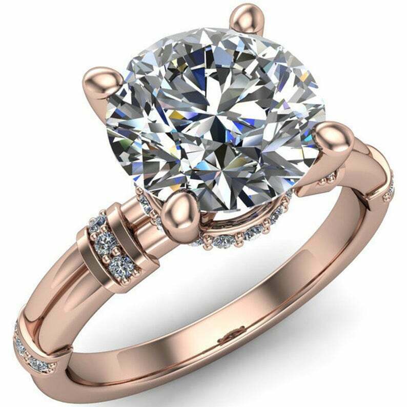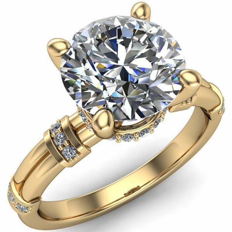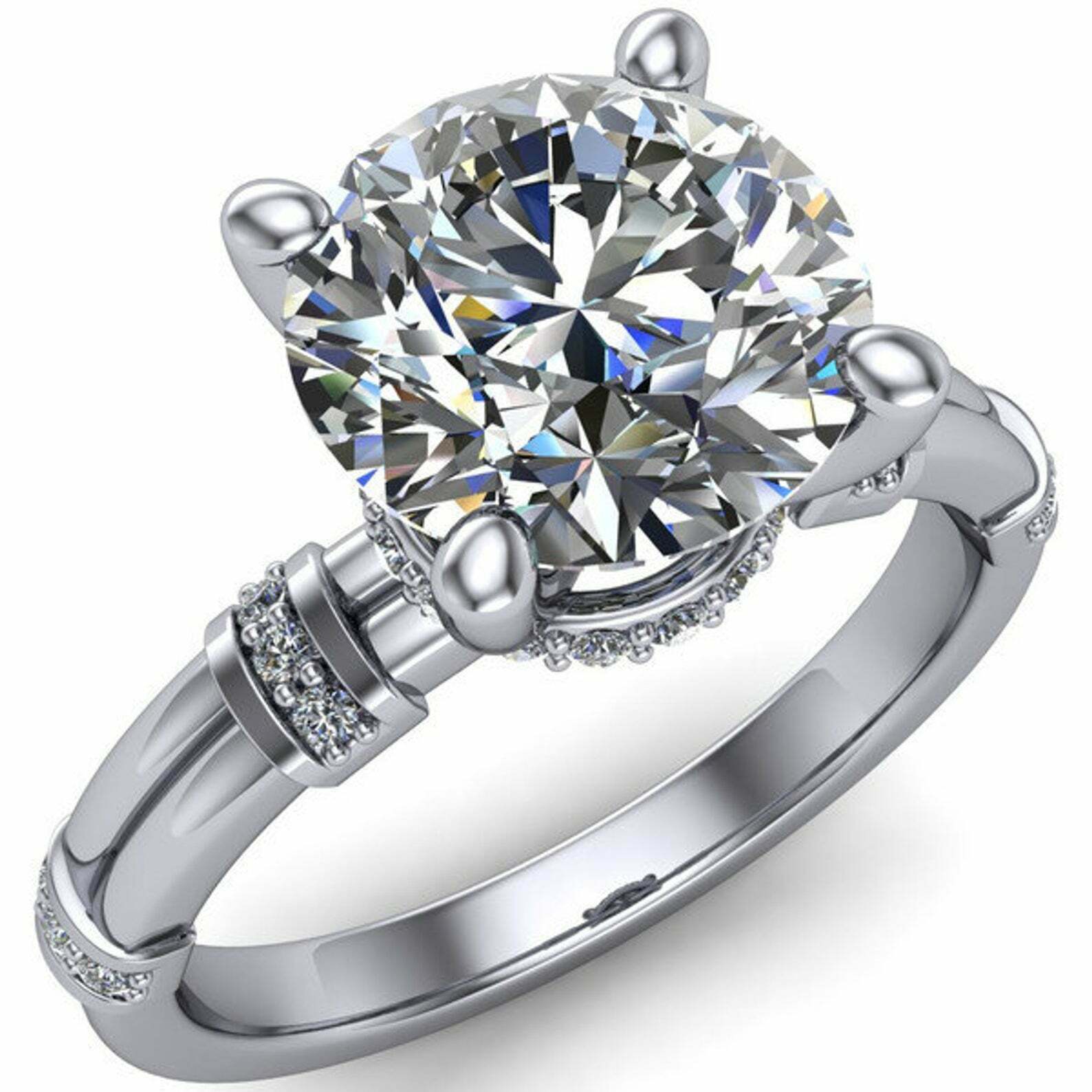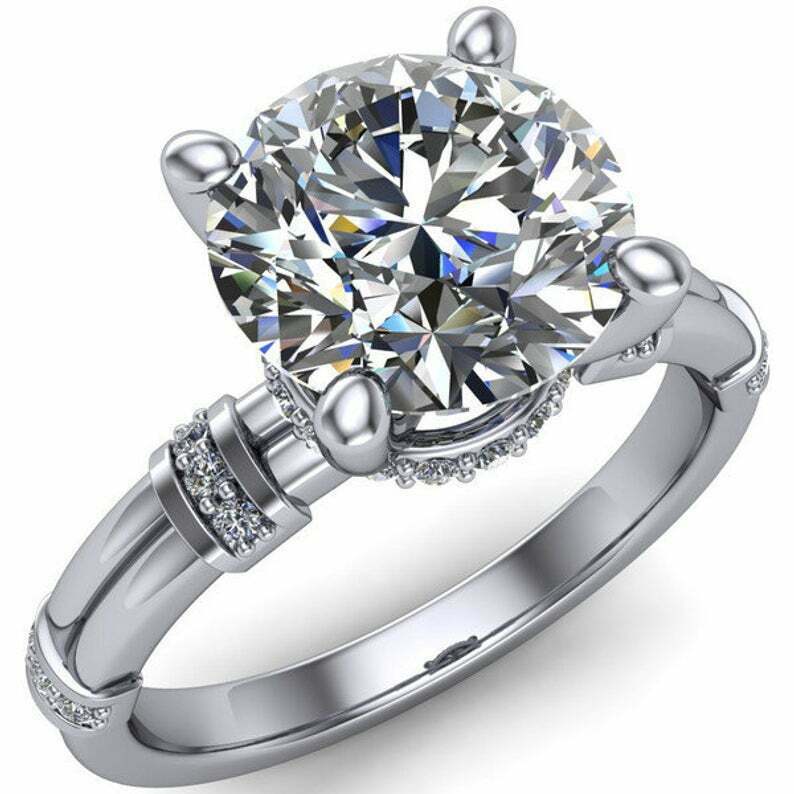 3.5ct Round Cut Diamond Stylish Solitaire Hidden Halo Ring 14k White Gold Finish
