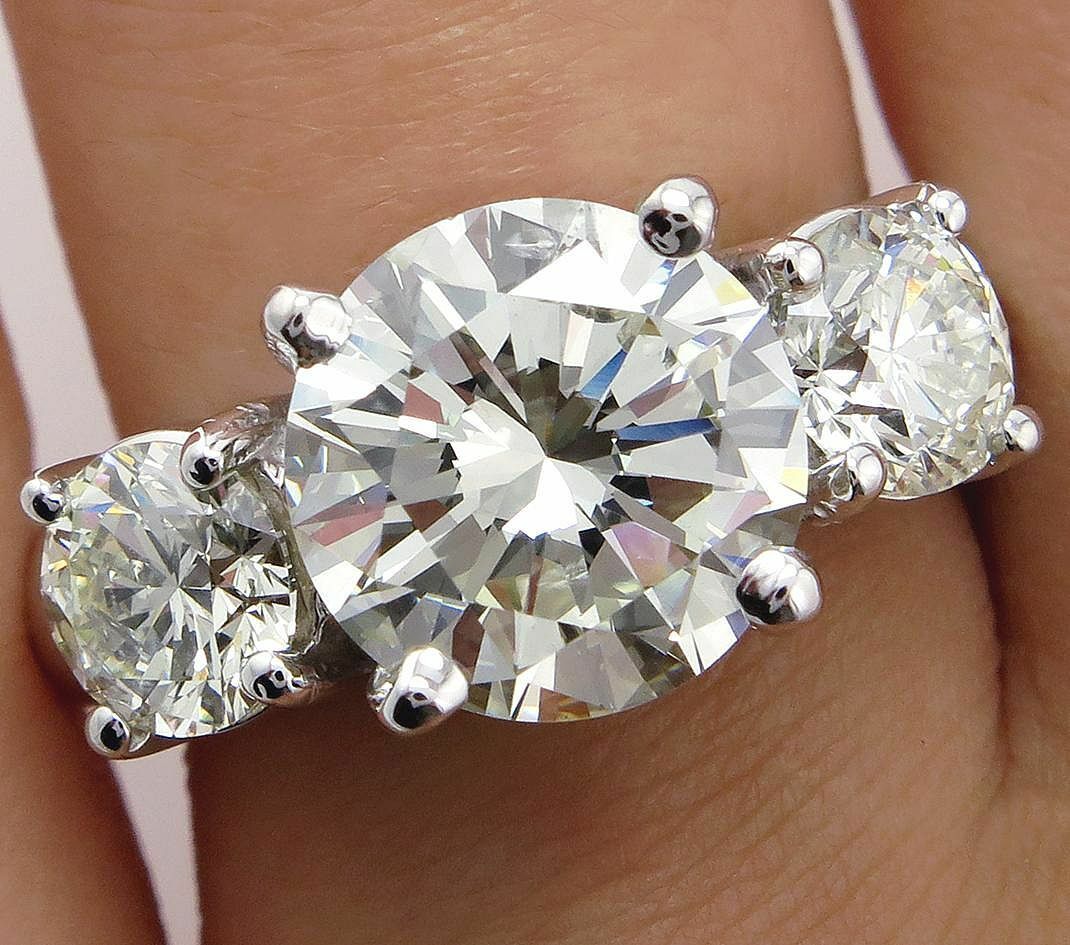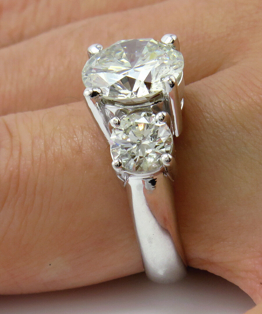 3.5Ct Round Cut Diamond Trilogy Solitaire Engagement Ring 18K White Gold Finish