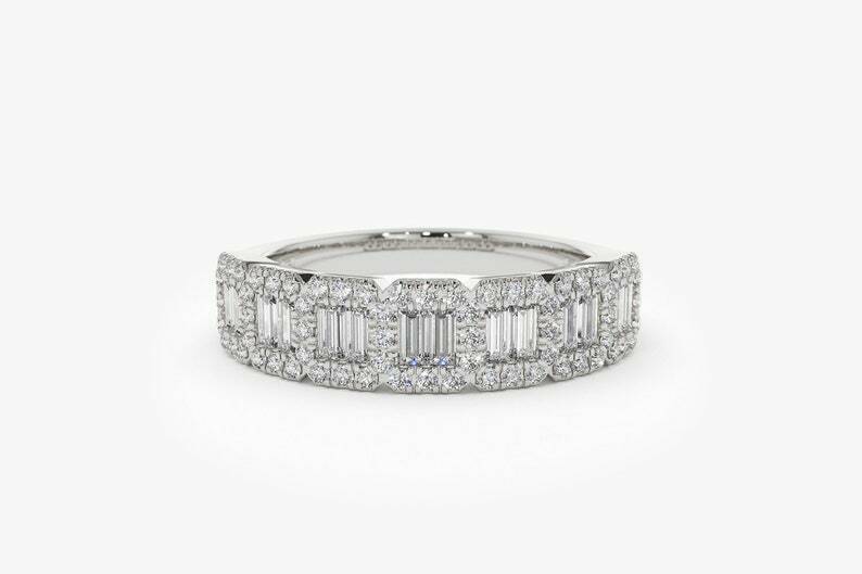 3.5ct Wedding Ring Band Baguette Cut Diamond Halo Cluster 14k White Gold Finish