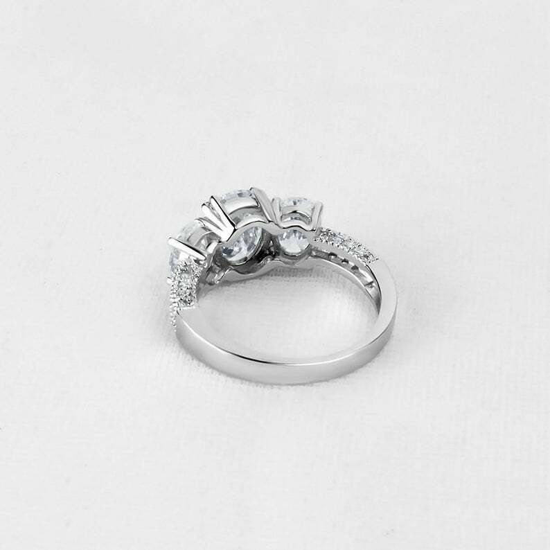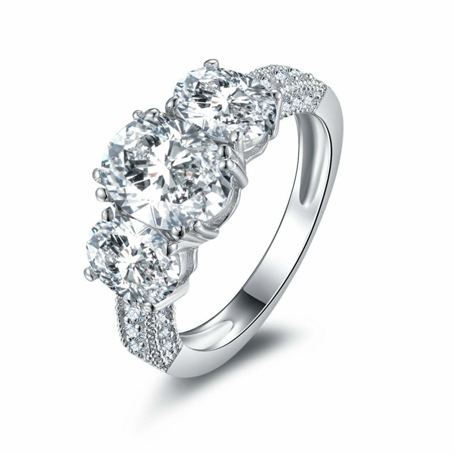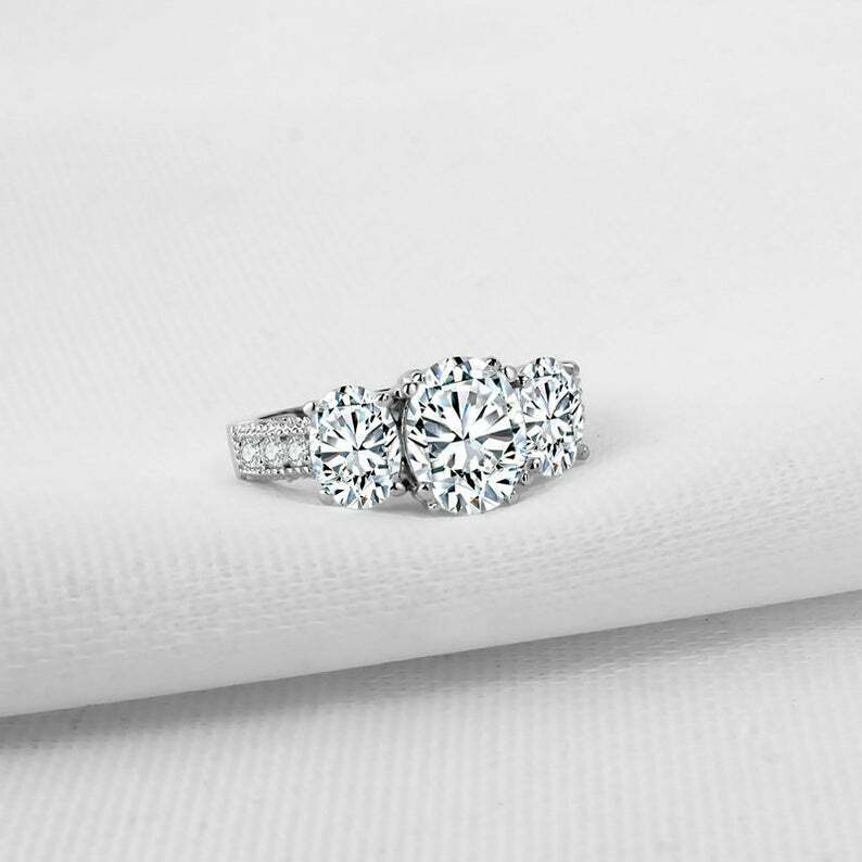3.6ct Oval Cut Diamond Engagement Ring Milgrain Accent Trilogy 14k White Gold Finish