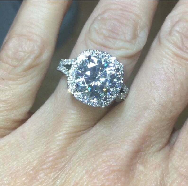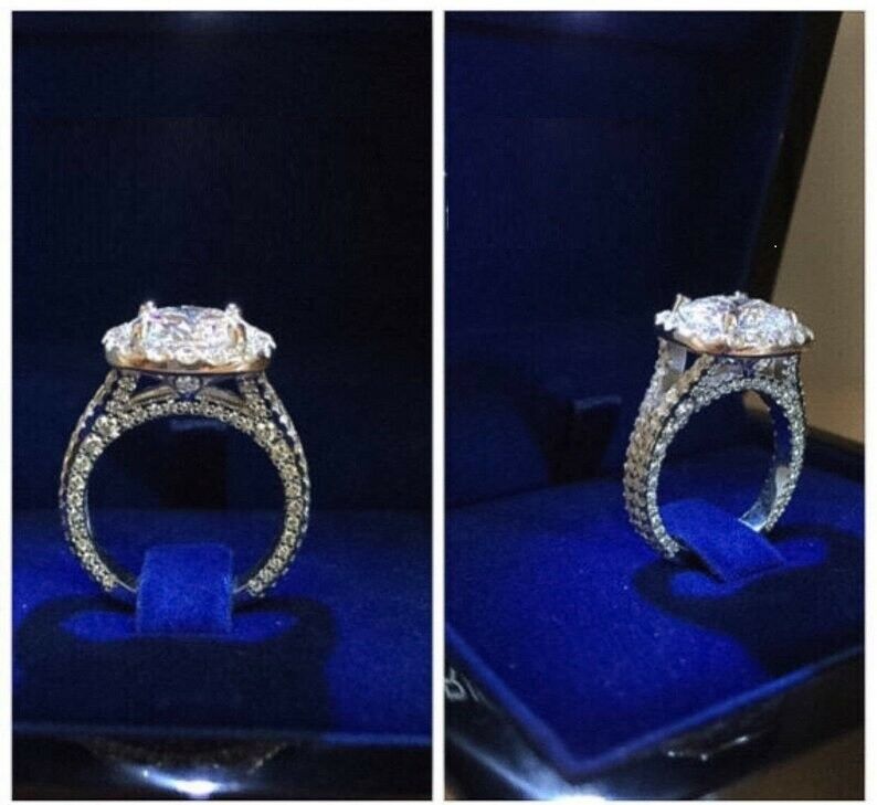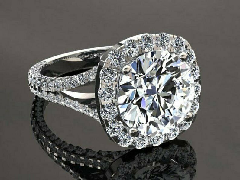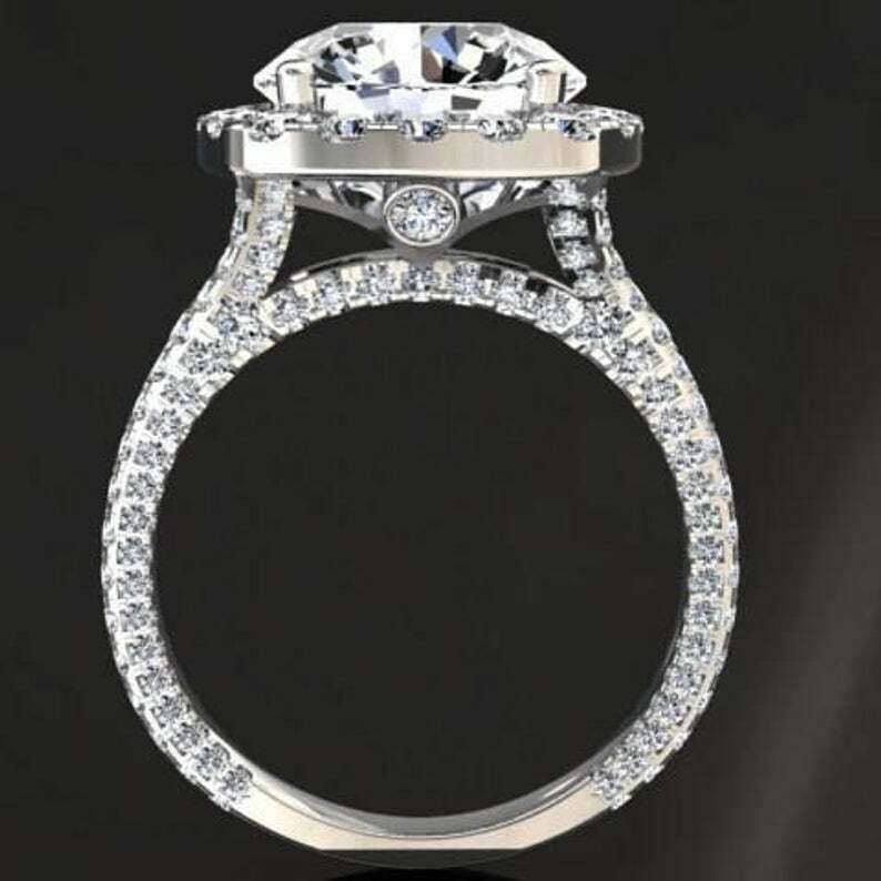 3.6ct Round Cut Diamond Halo Split Shank Engagement Ring 14k White Gold Finish