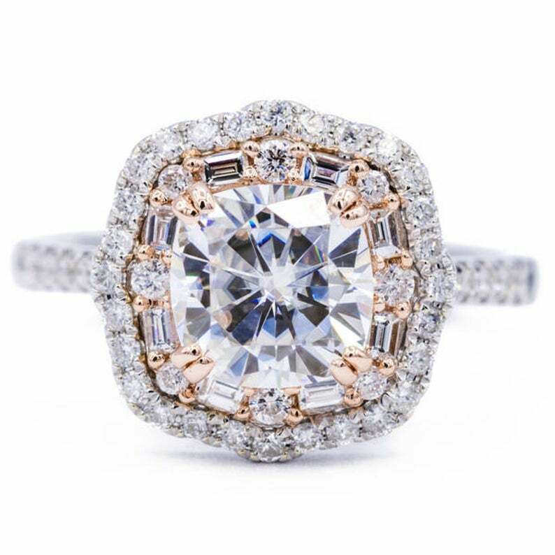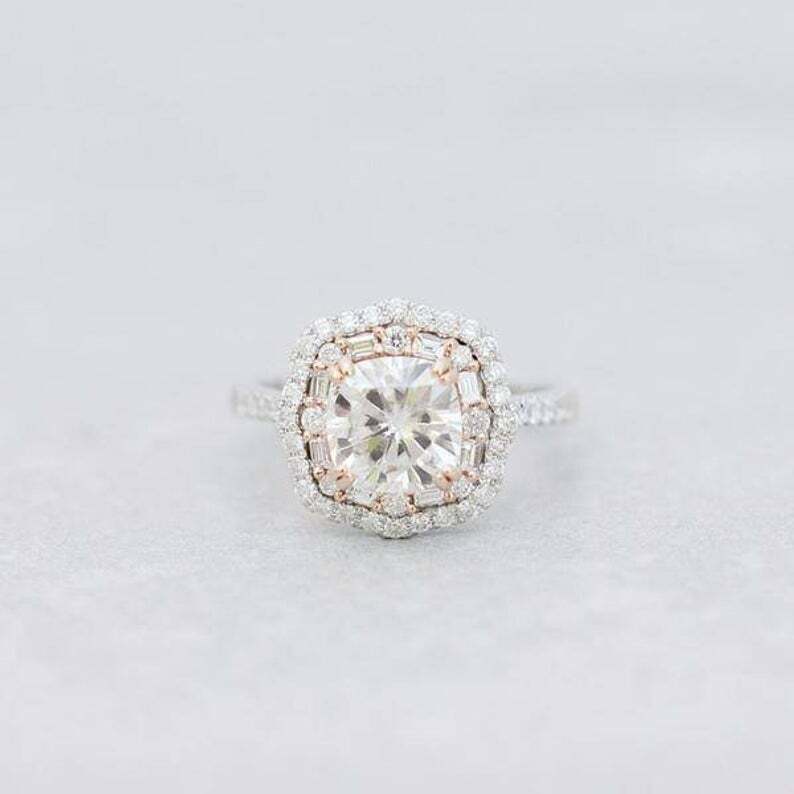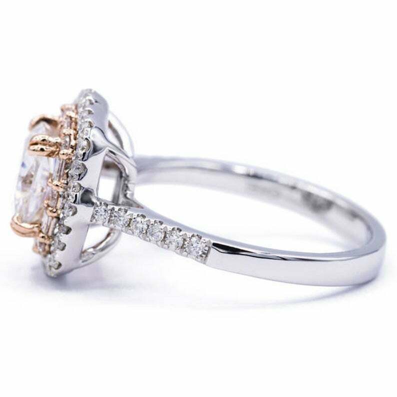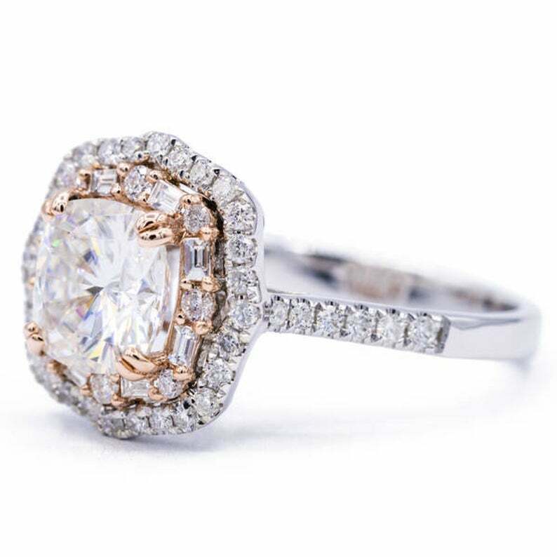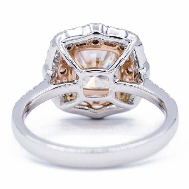 3.7ct Cushion Cut VVS1D Diamond Engagement Ring Double Halo 14k Dual Gold Finish