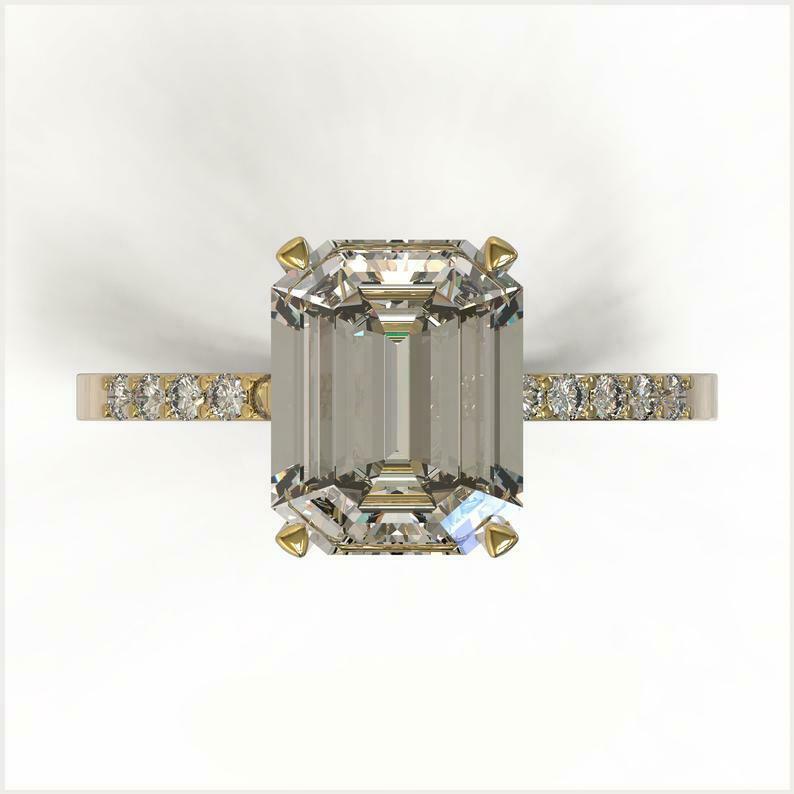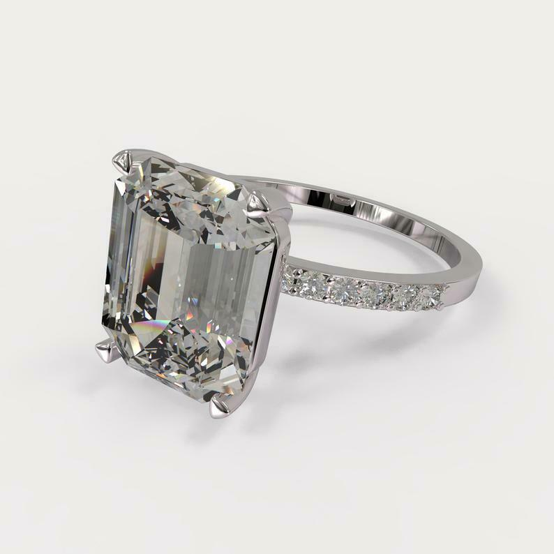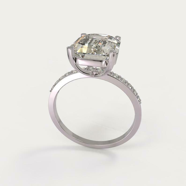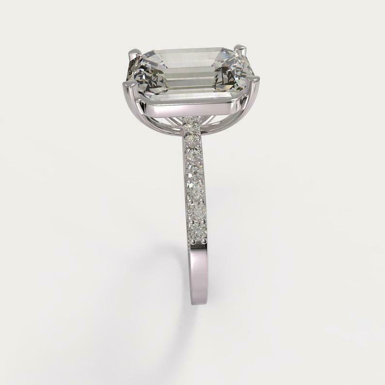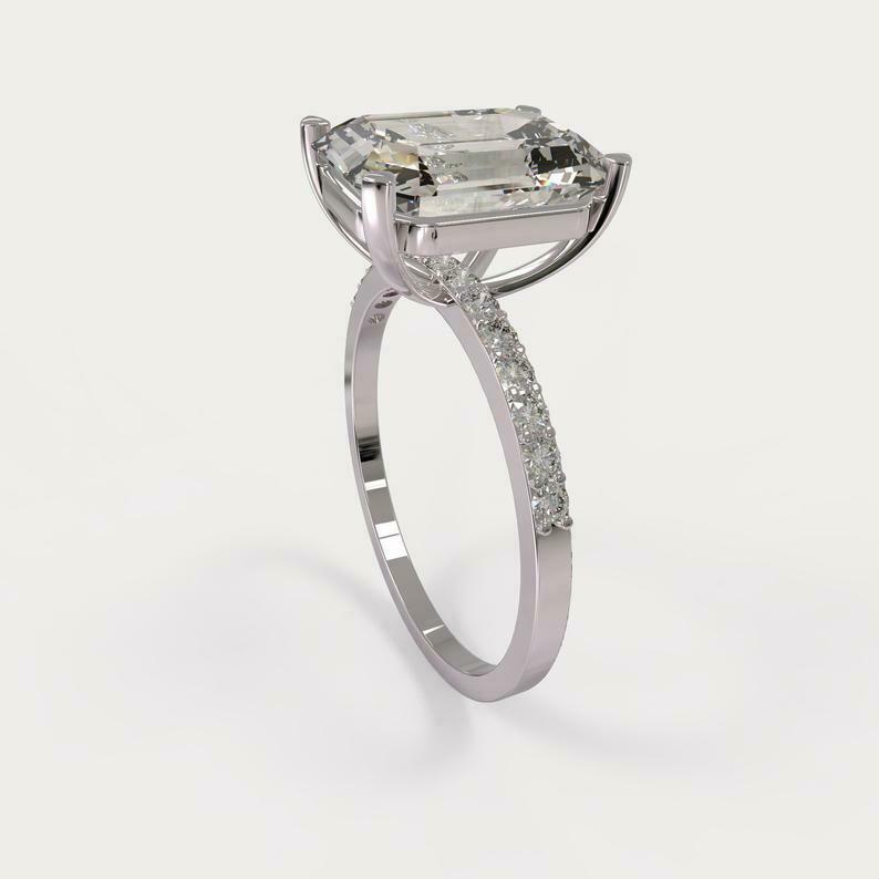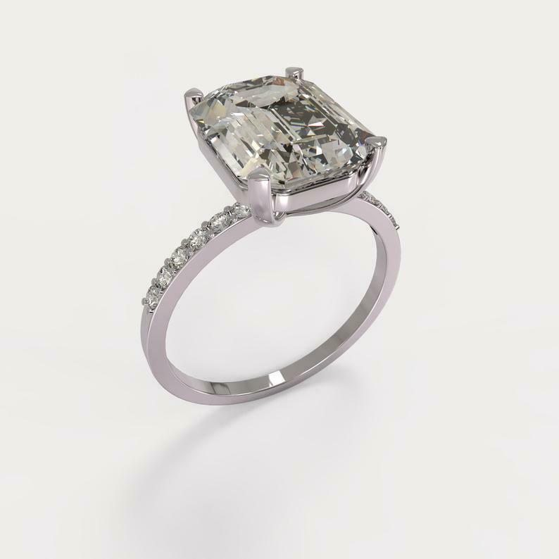 3.9ct Emerald Cut Diamond Engagement Ring Solitaire with Accent 14k White Gold Over