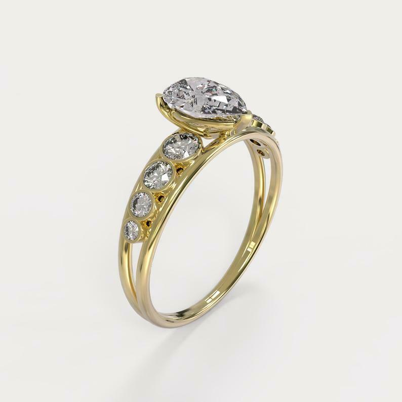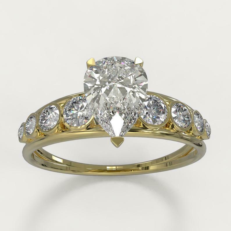 3.9ct Pear Cut Diamond Solitaire Stylish Bezel Accent Ring 14k Yellow Gold Finish