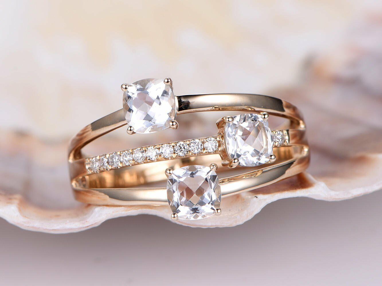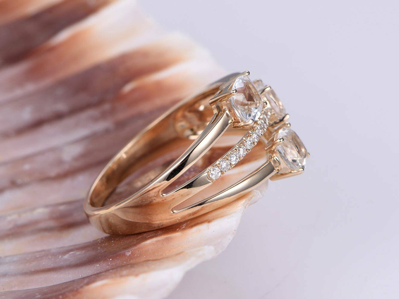 3 Stone Split Shank Engagement Ring 2ct Cushion Cut Diamond 14k Rose Gold Finish