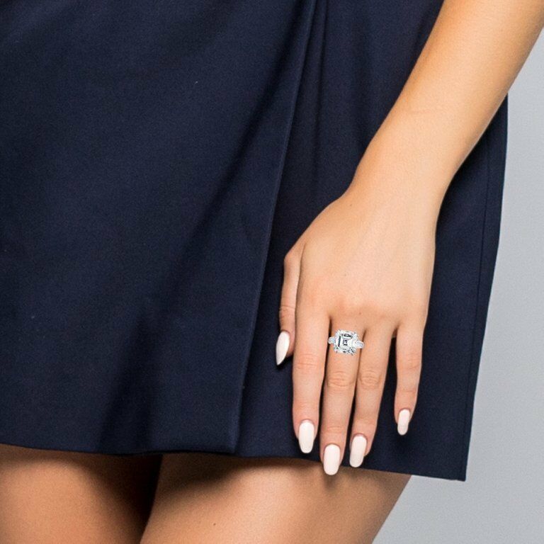 3Ct Asscher Baguette Cut Diamond Cocktail Engagement Ring 18K White Gold Finish