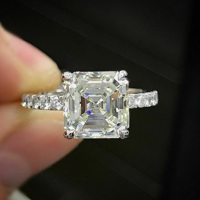 3Ct Asscher Cut Diamond Solitaire Eternity Engagement Ring 14K White Gold Finish