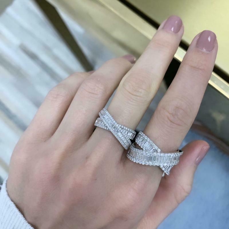 3ct Baguette Cut Diamond Engagement Ring 14k White Gold Finish Iced Cross Design