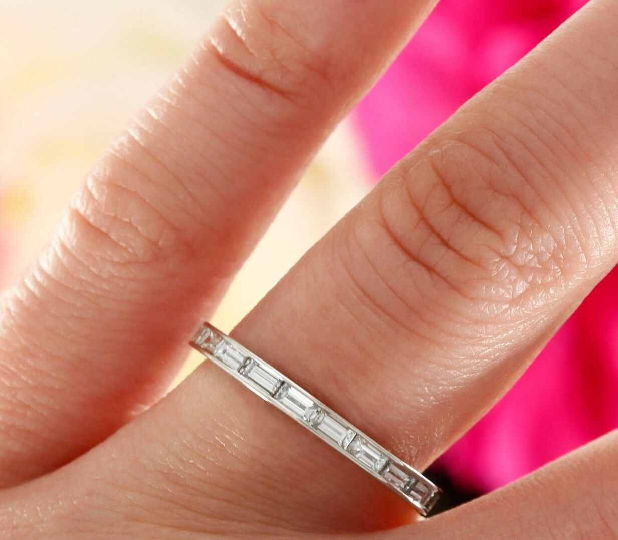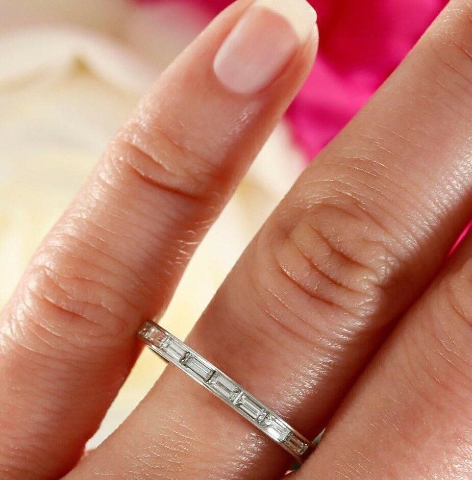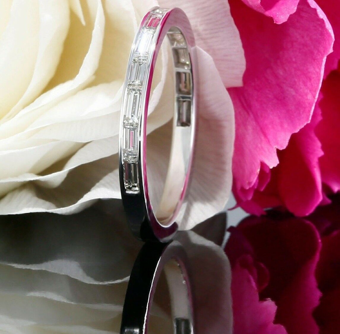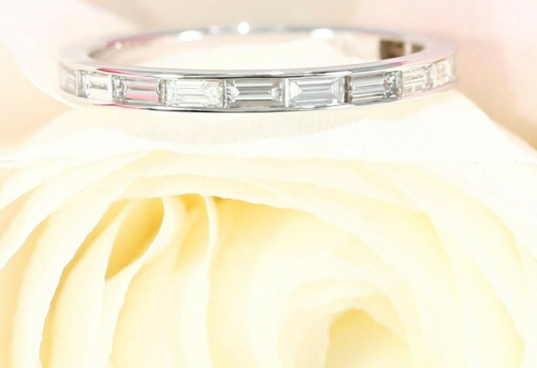 3ct Baguette Cut Diamond Half Eternity Wedding Ring Band 14k White Gold Finish
