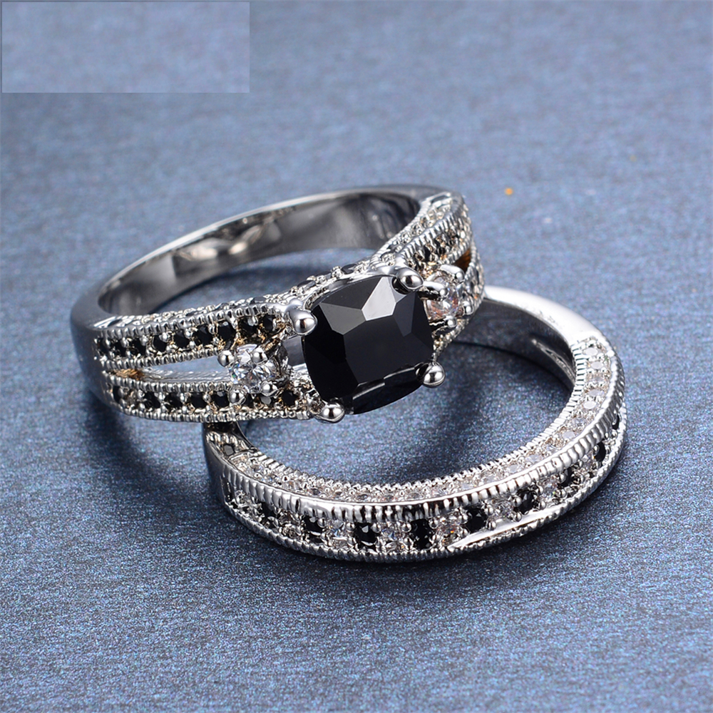 3ct Cushion Black Diamond Engagement Ring 14k White Gold Finish Split Bridal Set