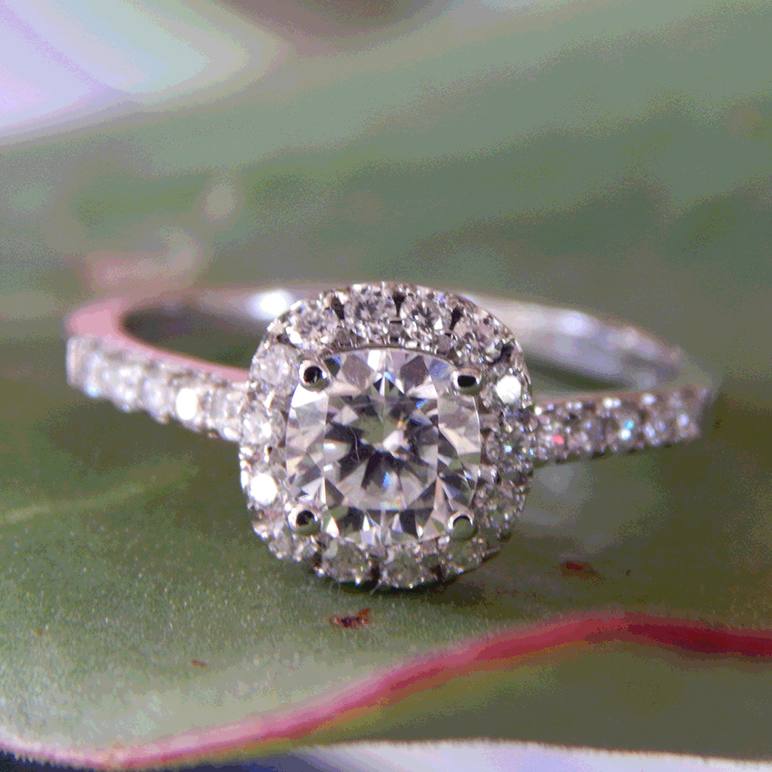 3ct Cushion Cut Diamond Engagement Ring 18k White Gold Finish Halo Round Accents