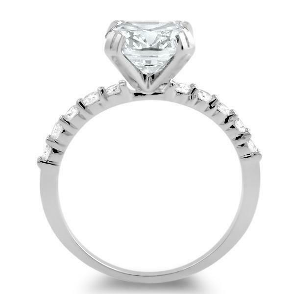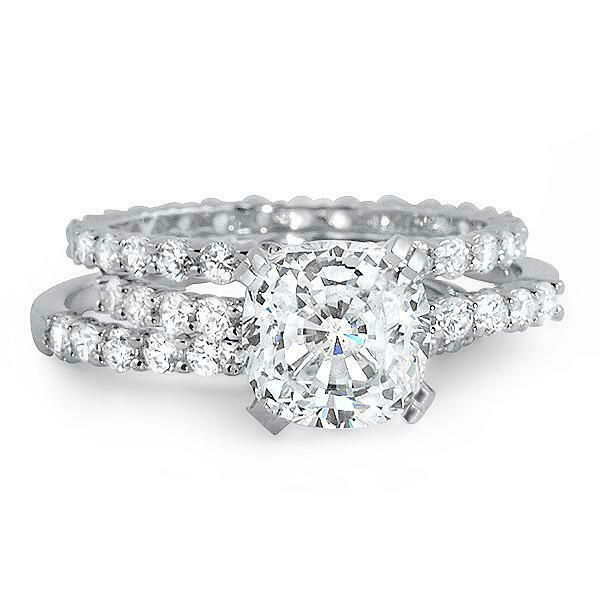 3ct Cushion Cut Diamond Engagement Ring Stackable Trio Set 14k White Gold Finish