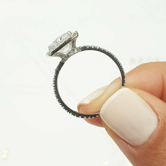 3Ct Cushion Cut Diamond Halo Engagement Ring 18K White Gold Finish Round Accents