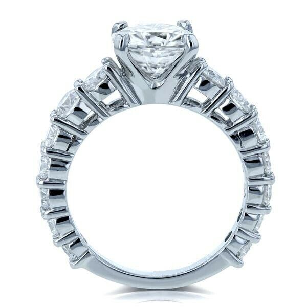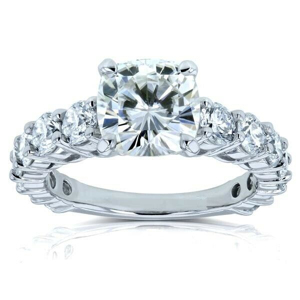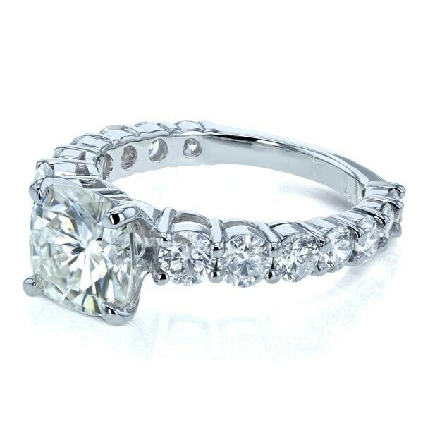 3Ct Cushion Cut Diamond Solitaire Ring 14K White Gold Finish with Round Accents