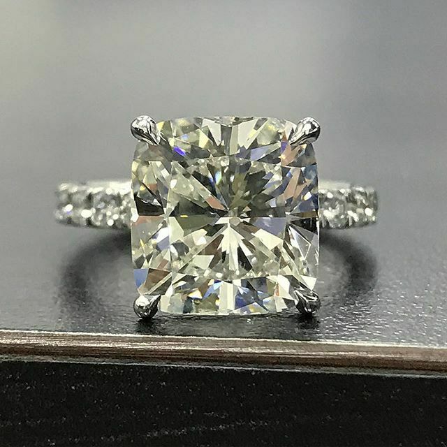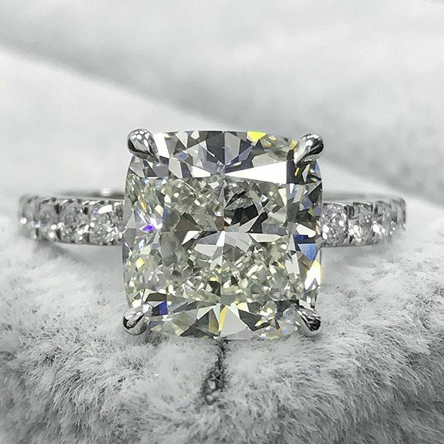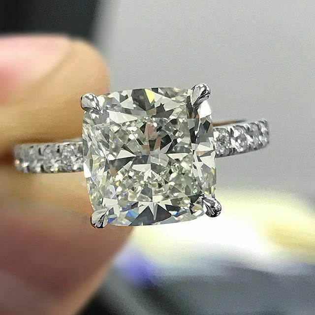 3Ct Cushion Cut Diamond Solitaire with Round Accents Ring 14K White Gold Finish