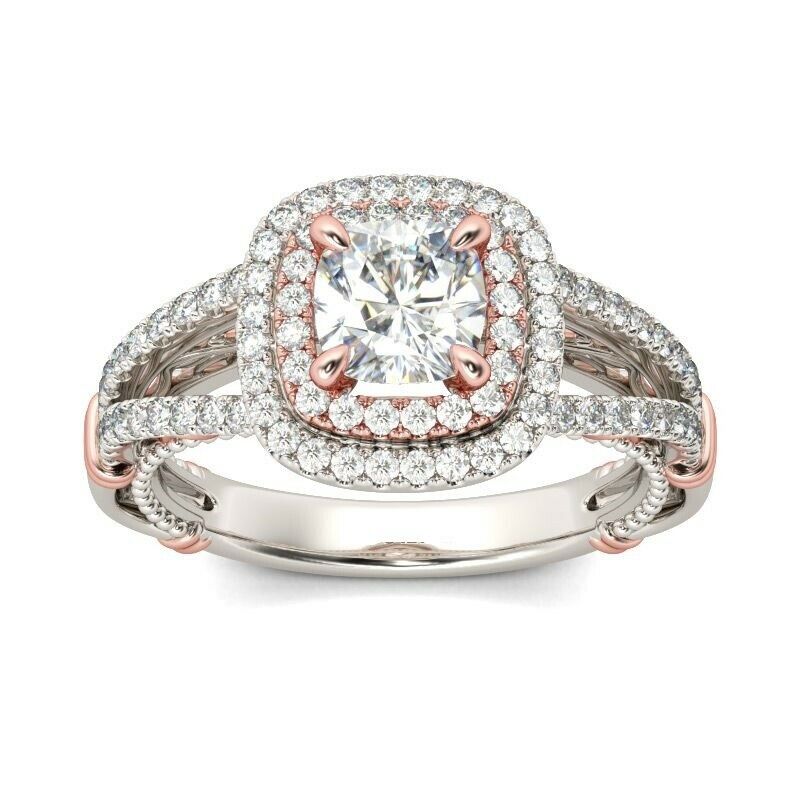 3Ct Cushion Cut Diamond Split Shank Engagement Vintage Ring 14K Dual Gold Finish