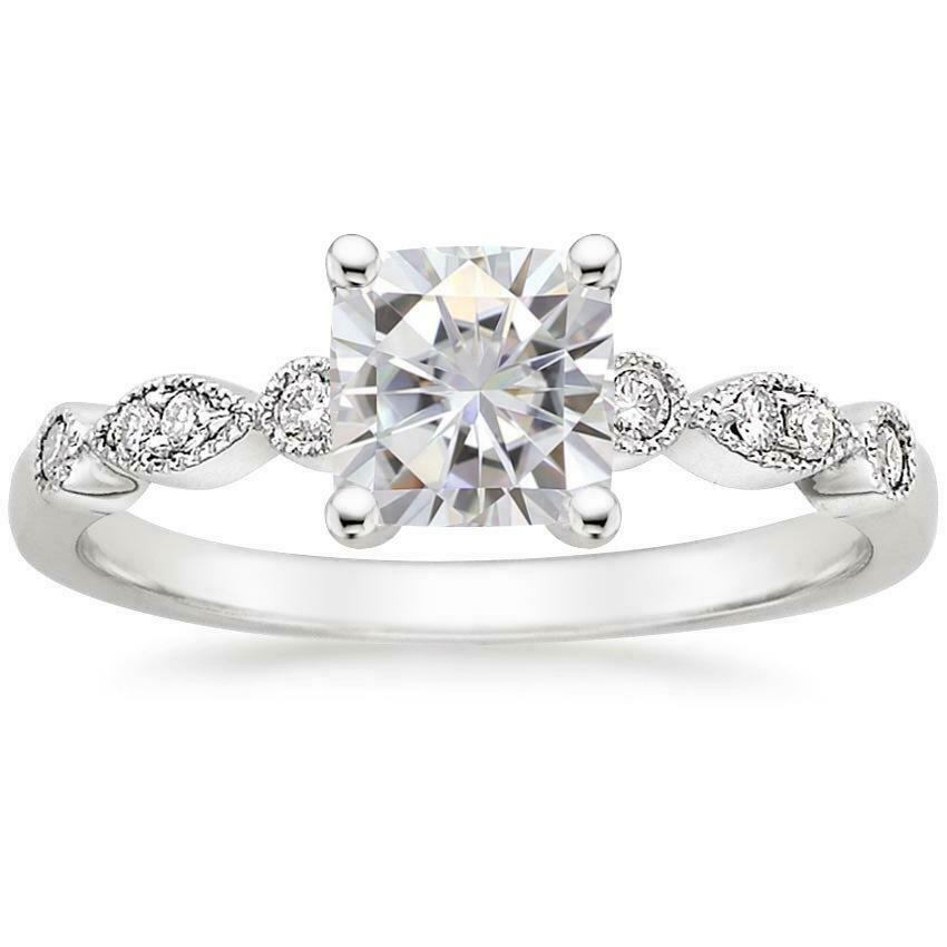 3ct Cushion Diamond Engagement Ring 14k White Gold Over Vintage Accent Solitaire