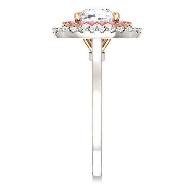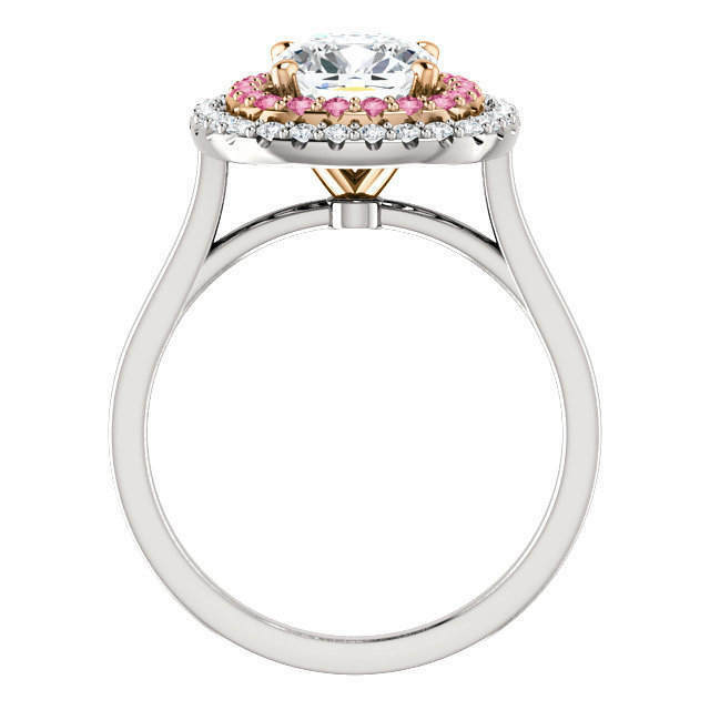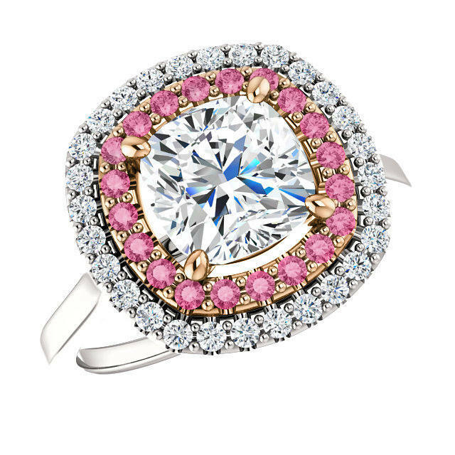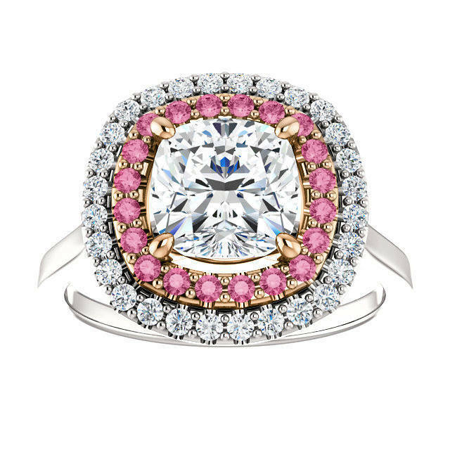 3ct Cushion Diamond Pink Sapphire Dual Halo Engagement Ring 14k White Gold Over