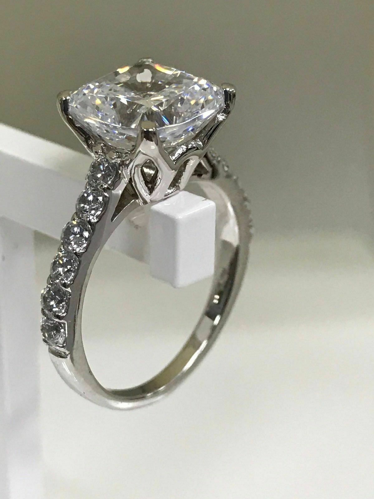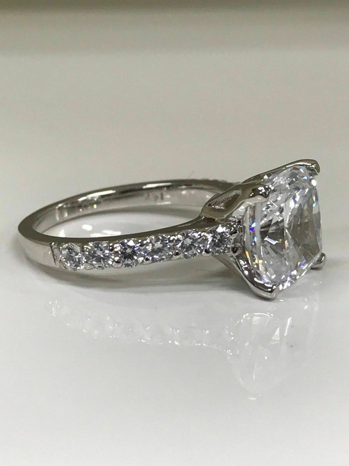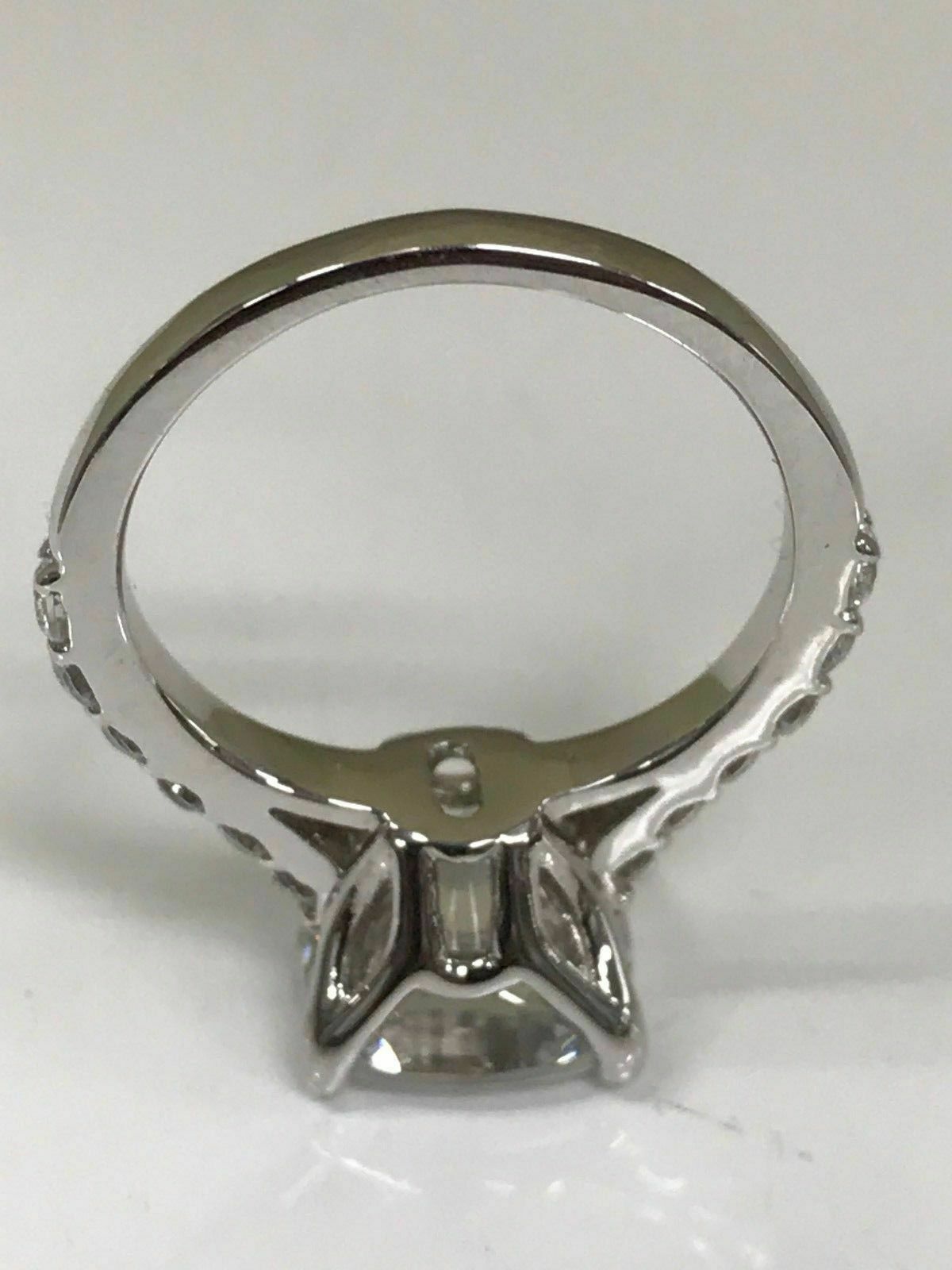 3Ct Cushion Diamond Round Accents Solitaire Engagement Ring 14K White Gold Over