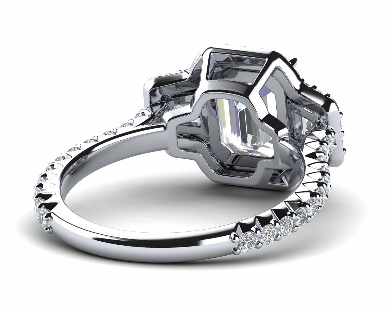 3ct Emerald Cut Diamond 3 Stone Halo Fancy Engagement Ring 14k White Gold Finish