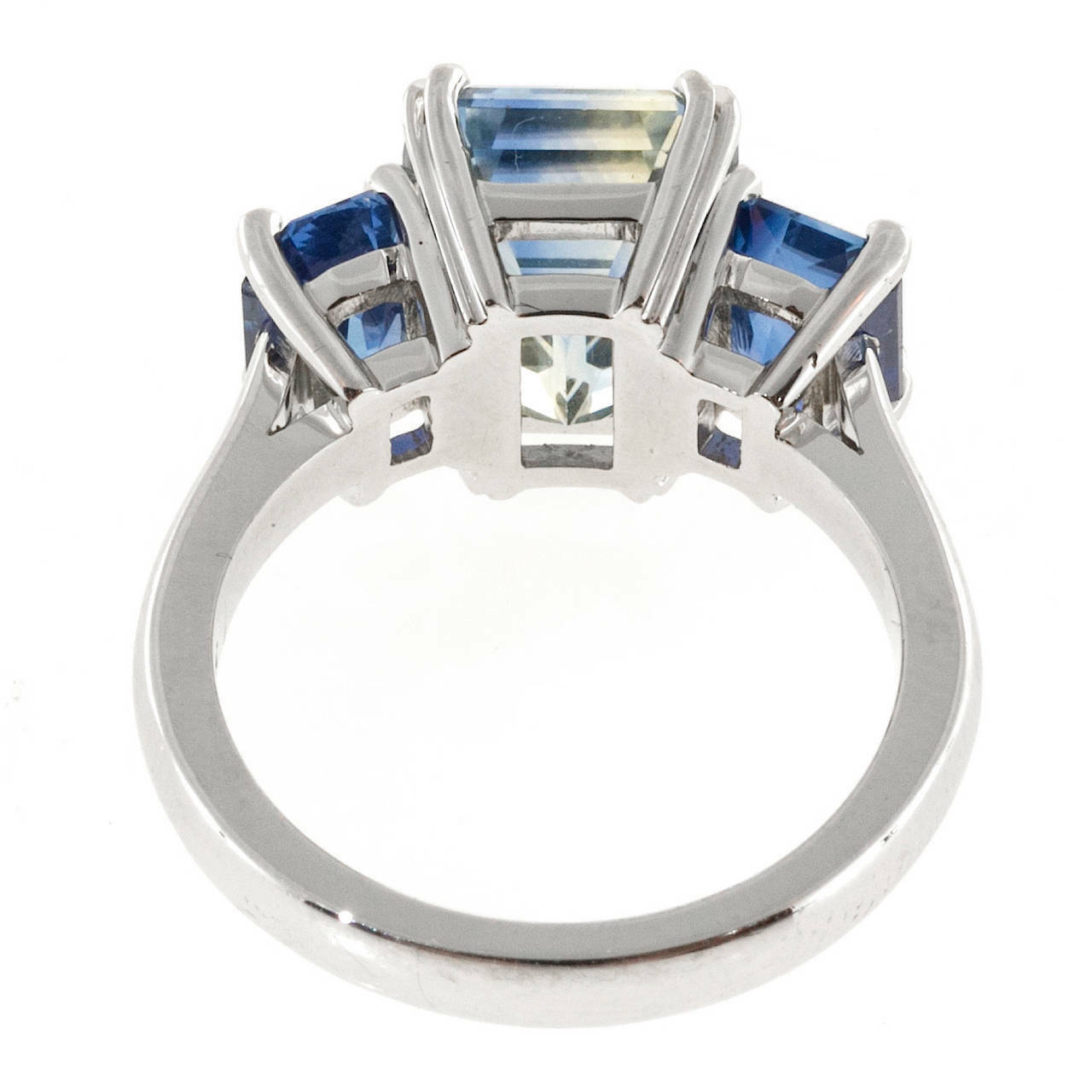 3ct Emerald Cut Diamond Blue Sapphire Accents Trilogy Ring 14k White Gold Finish