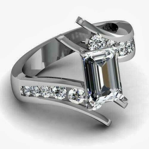 3ct Emerald Cut Diamond ByPass Style Engagement Ring 14K White Gold Finish