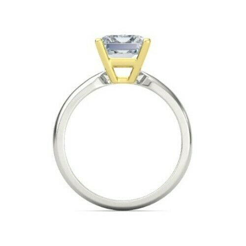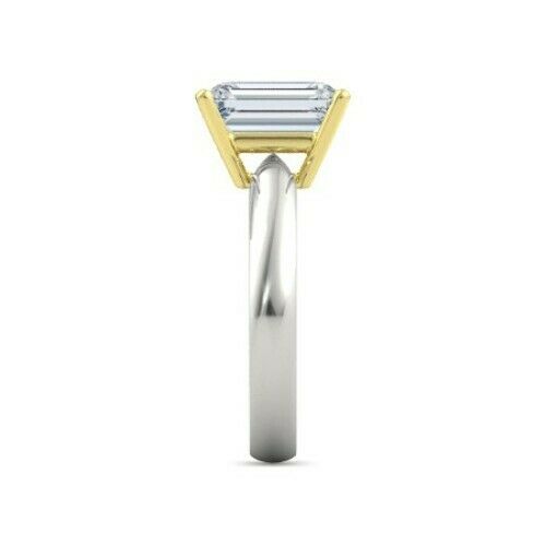 3Ct Emerald Cut Diamond Classic Solitaire Engagement Ring 14K Dual Gold Finish