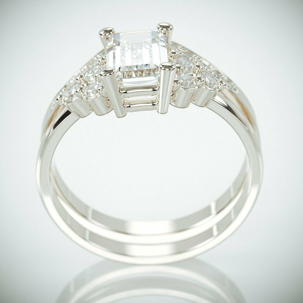 3Ct Emerald Cut Diamond Engagement Bridal Set Curved Band 14K White Gold Finish