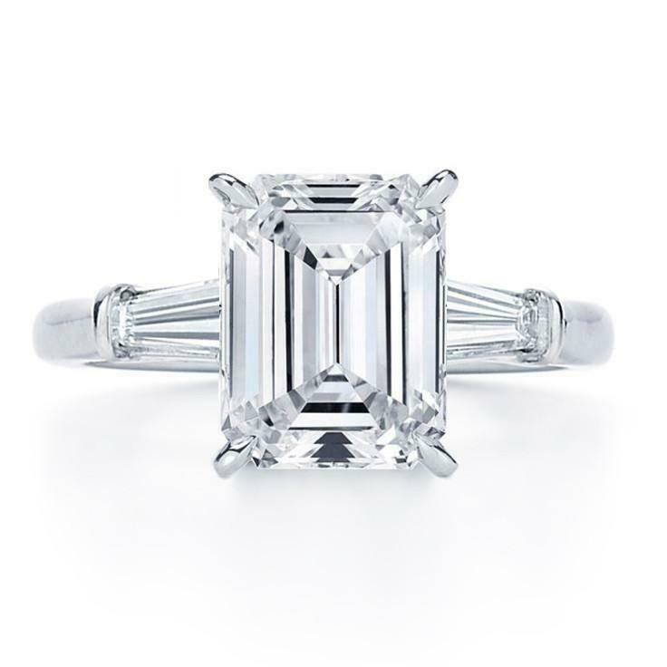 3ct Emerald Cut Diamond Engagement Ring 14k White Gold Finish Solitaire Trilogy