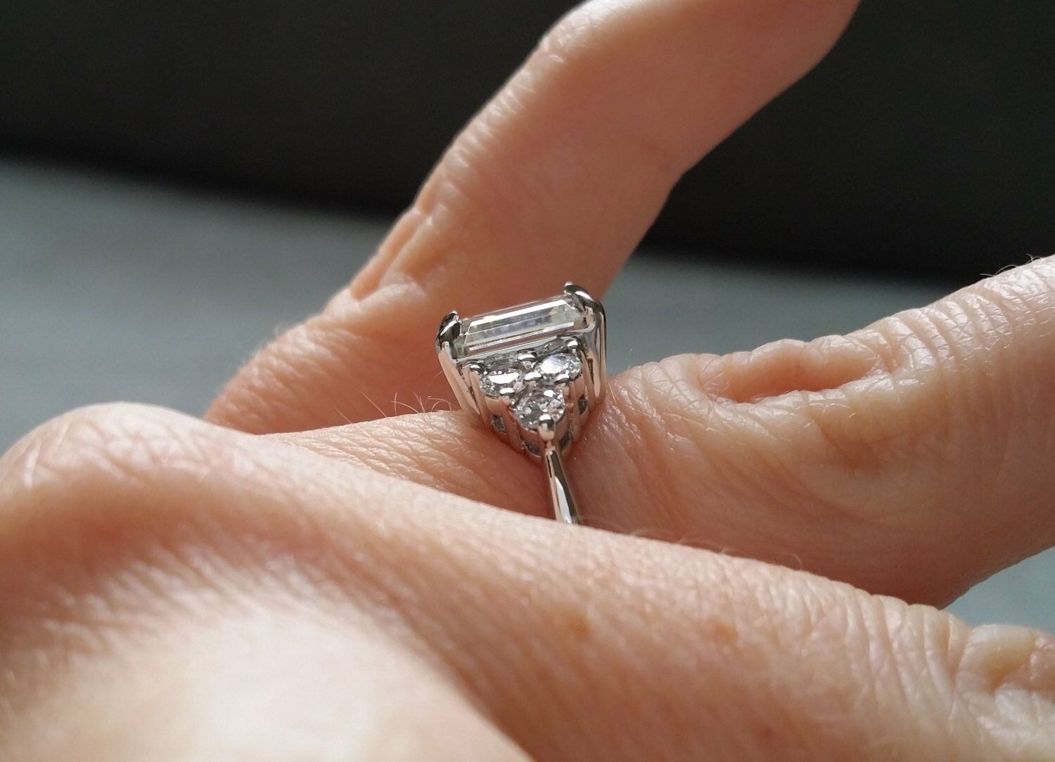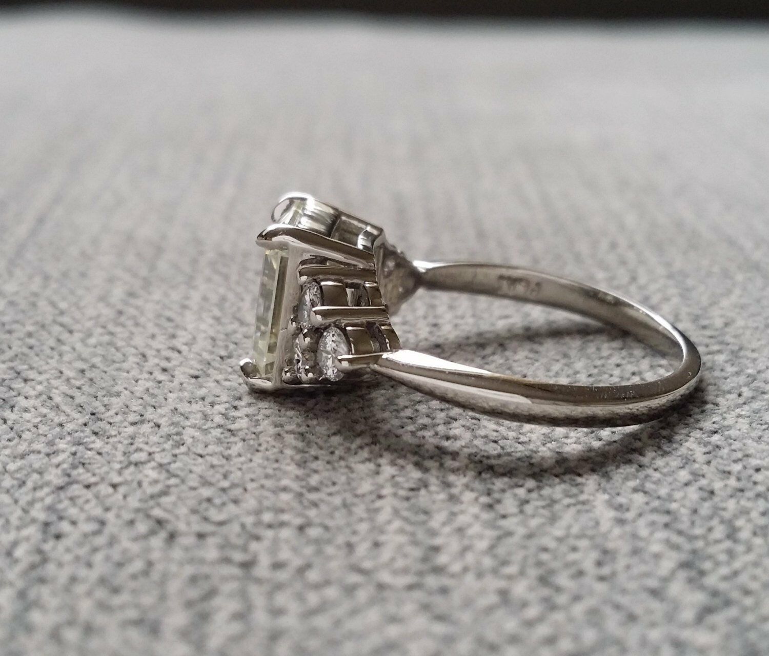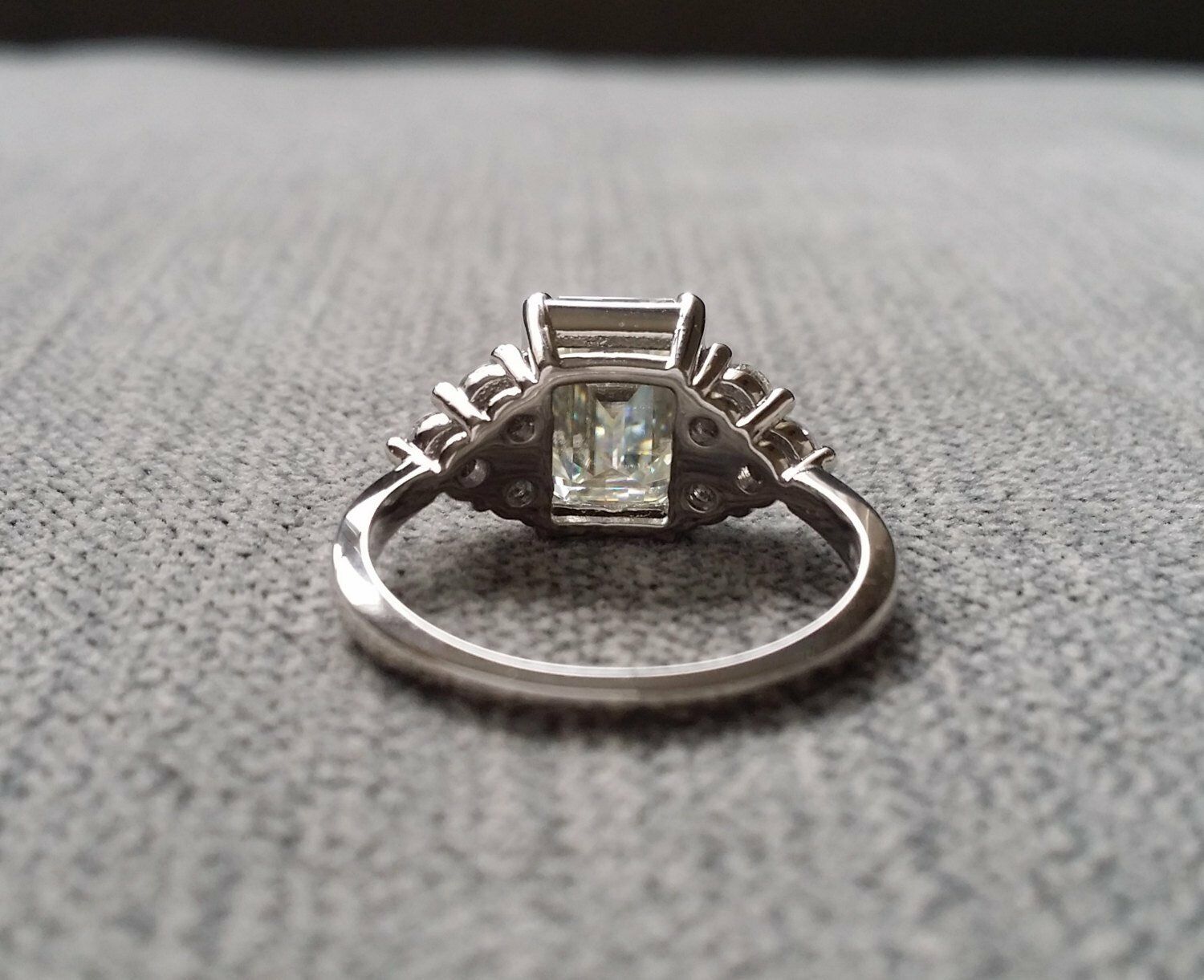 3Ct Emerald Cut Diamond Engagement Ring 14K White Gold Finish Three Stone Accent