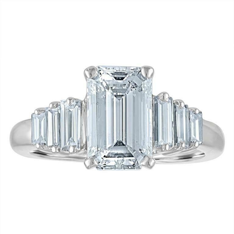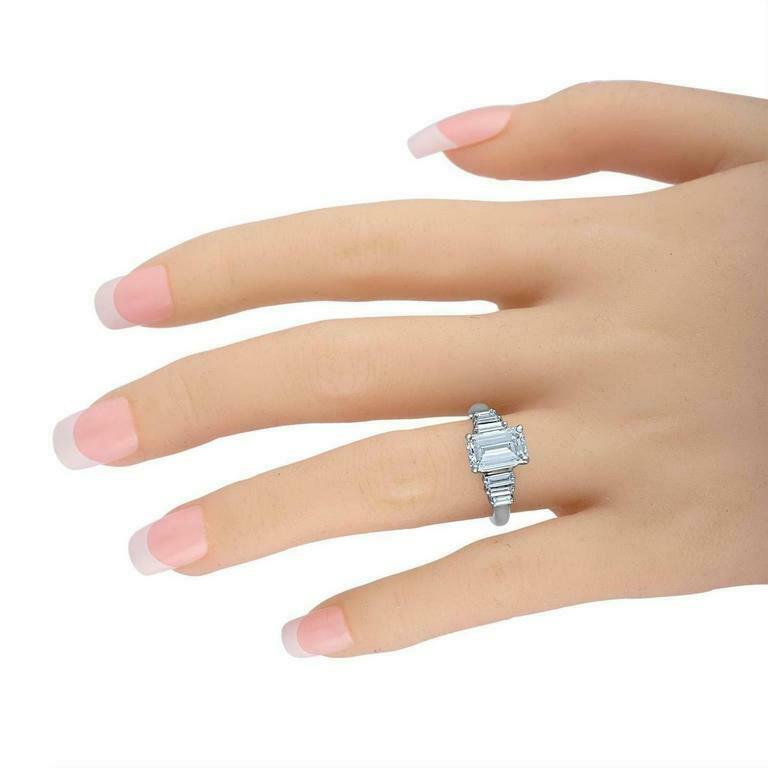 3ct Emerald Cut Diamond Engagement Ring Accents Solitaire 14k White Gold Finish
