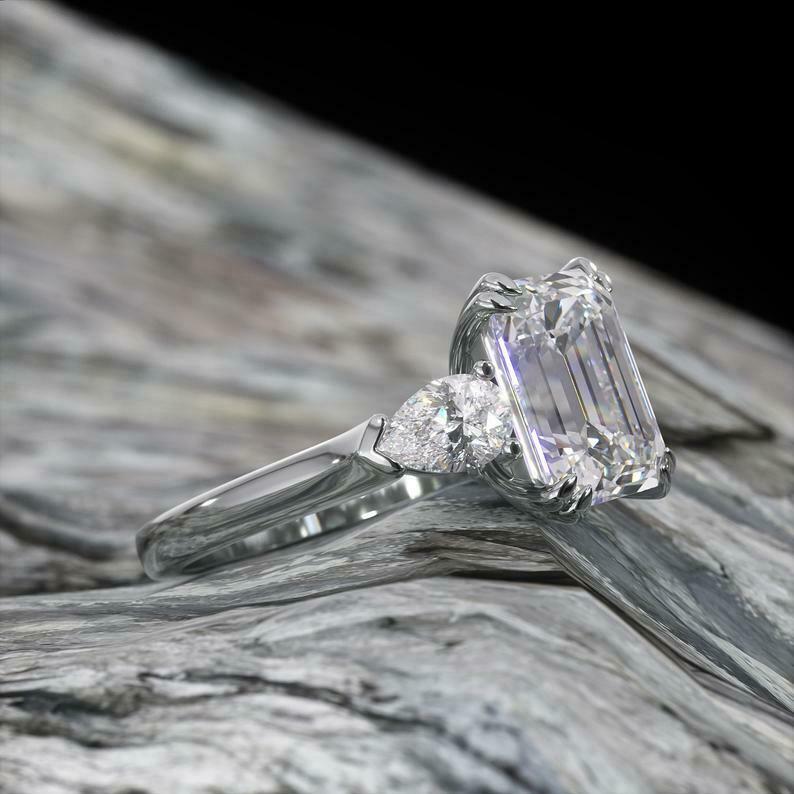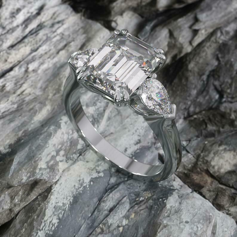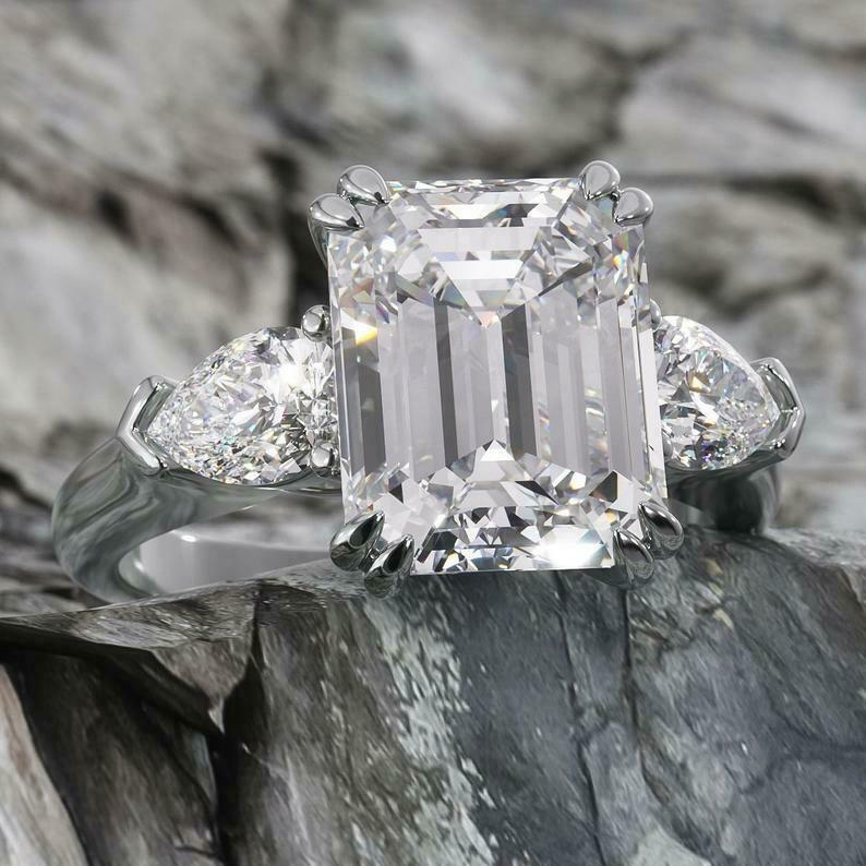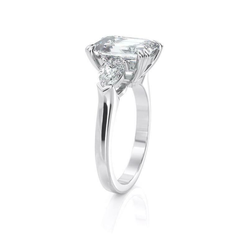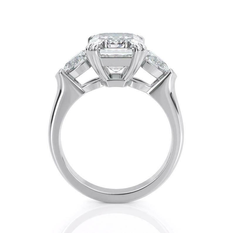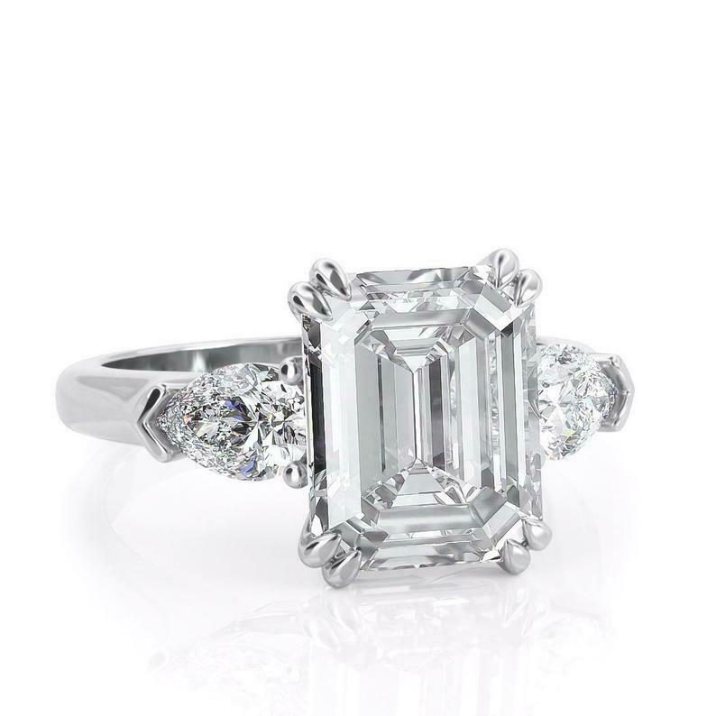 3ct Emerald Cut Diamond Engagement Ring Pear Accents Trilogy 14k White Gold Over