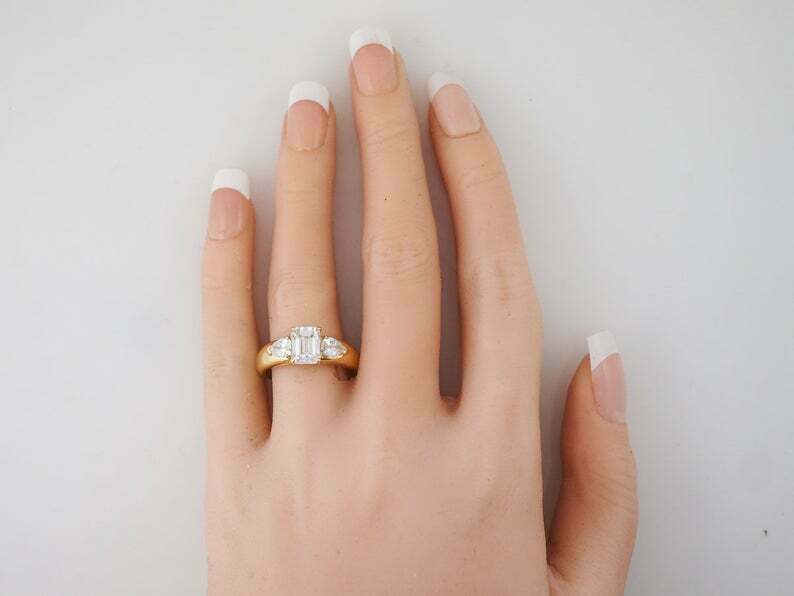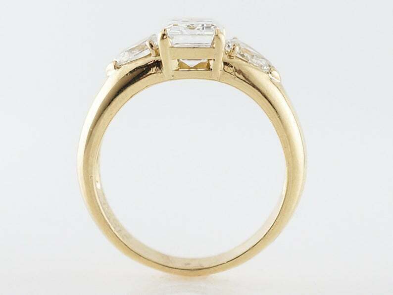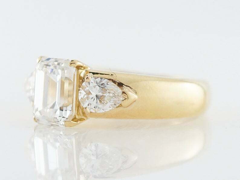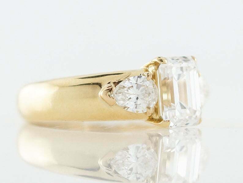 3ct Emerald Cut Diamond Engagement Ring Pear Accents Trilogy 14k Yellow Gold Over