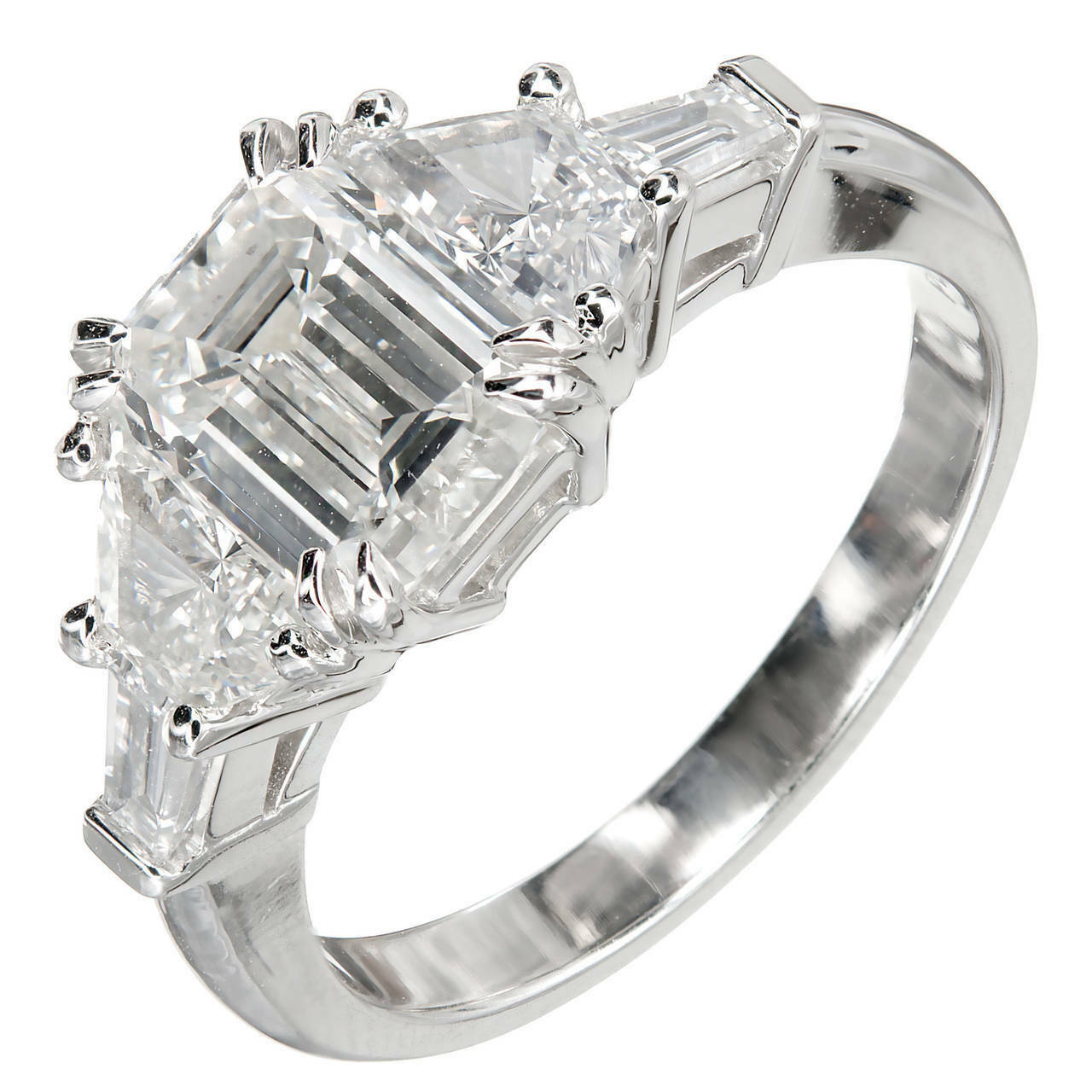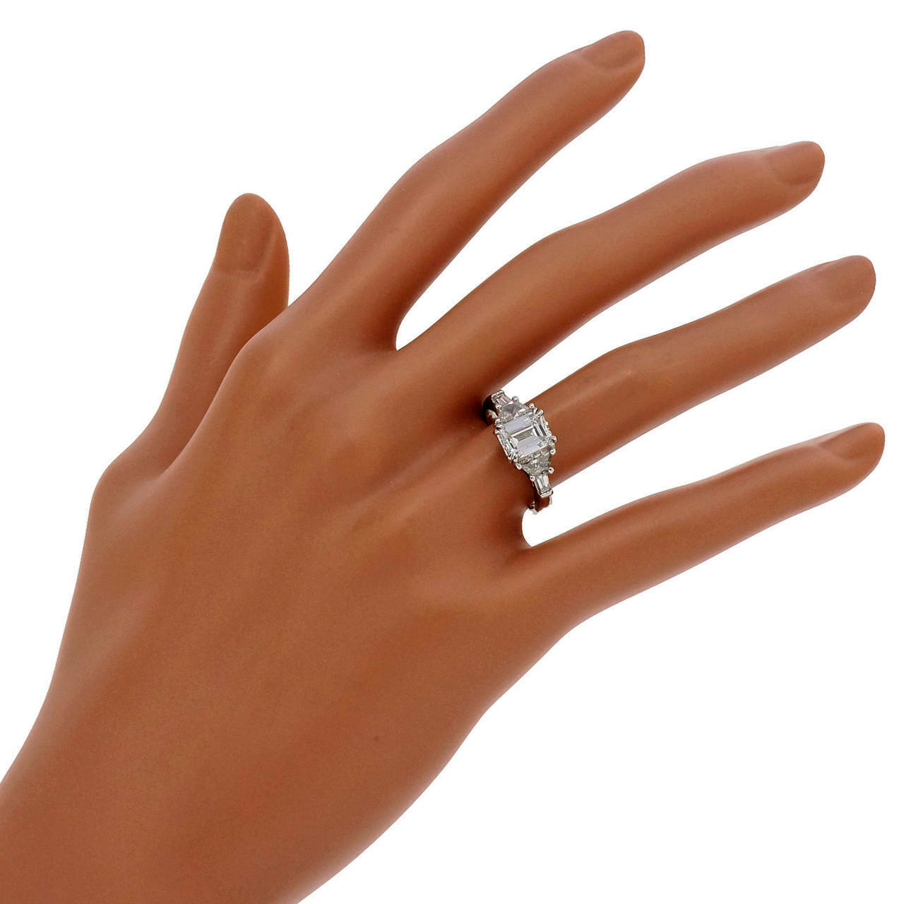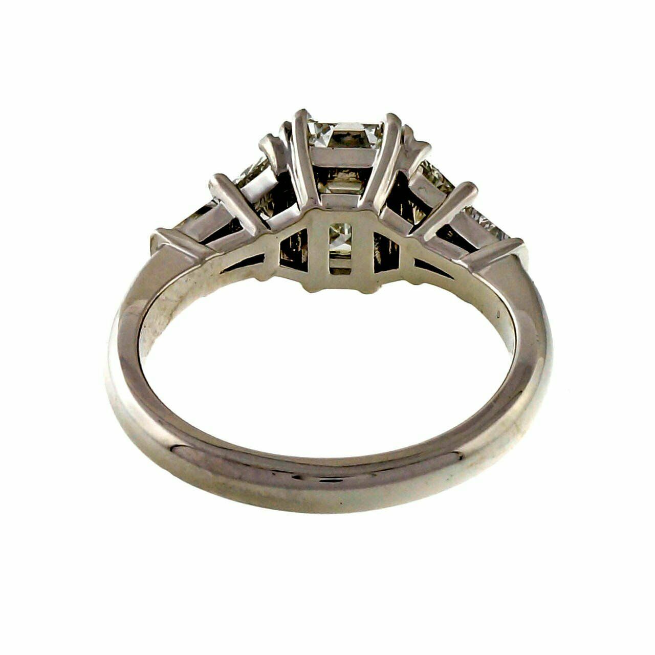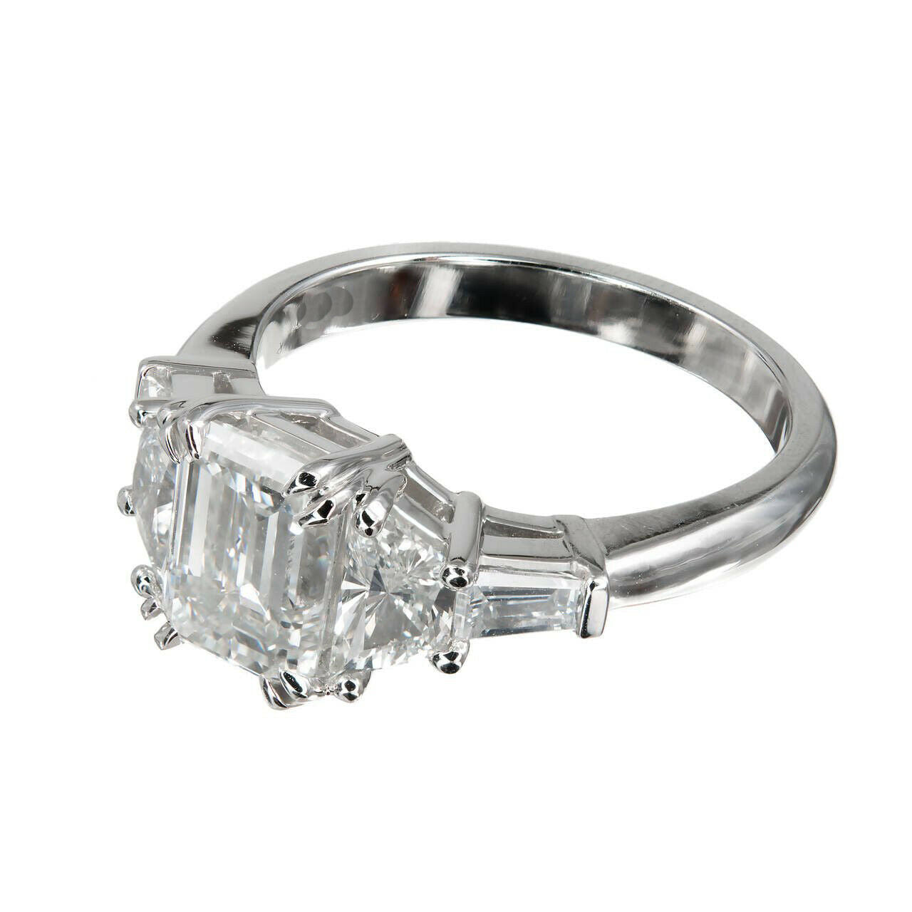 3ct Emerald Cut Diamond Engagement Ring Trilogy Women 14k White Gold Finish