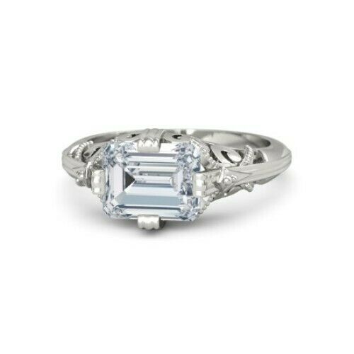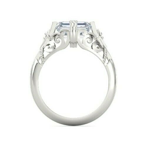 3Ct Emerald Cut Diamond Filigree Vintage Engagement Ring 14K White Gold Finish
