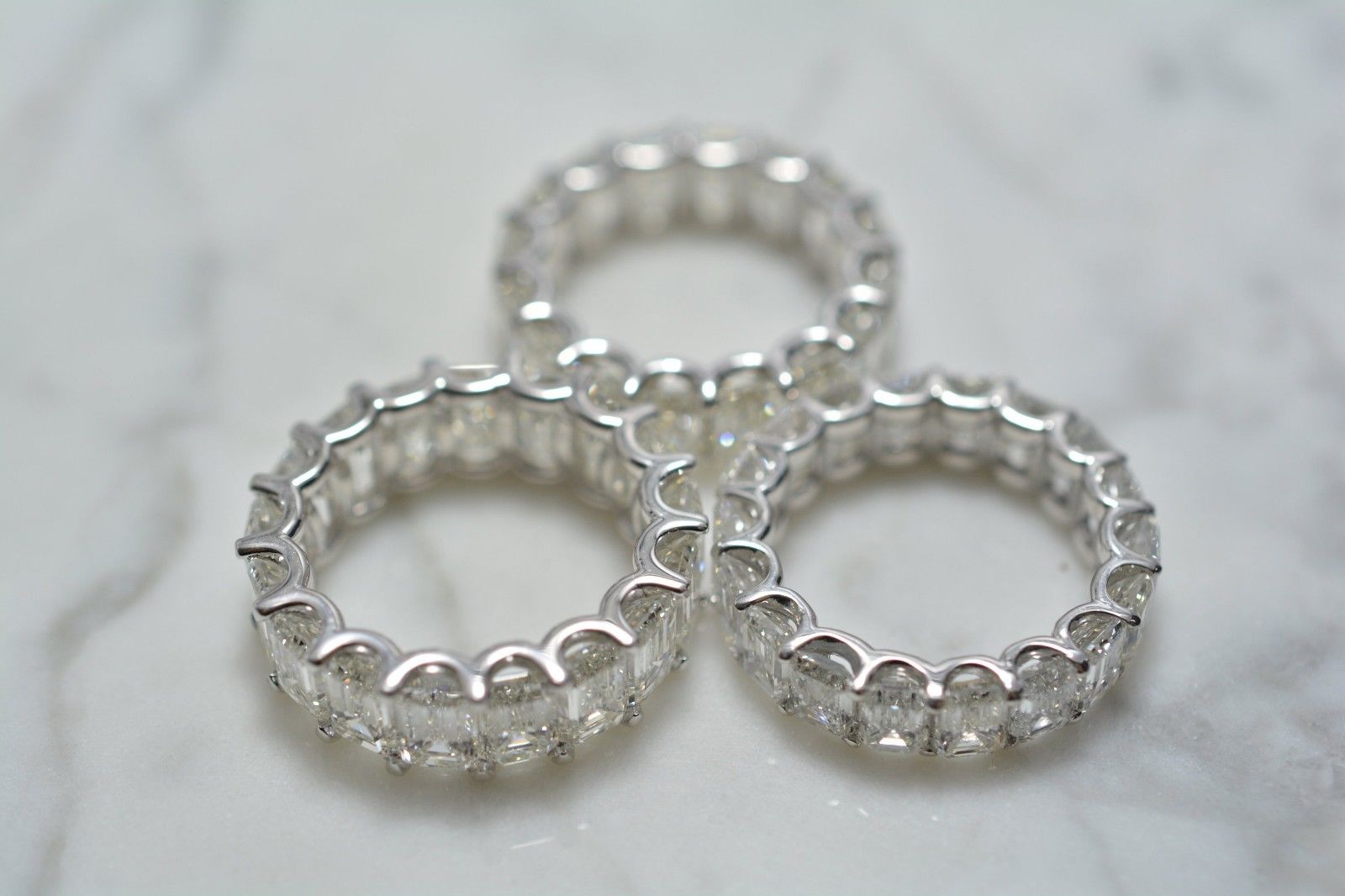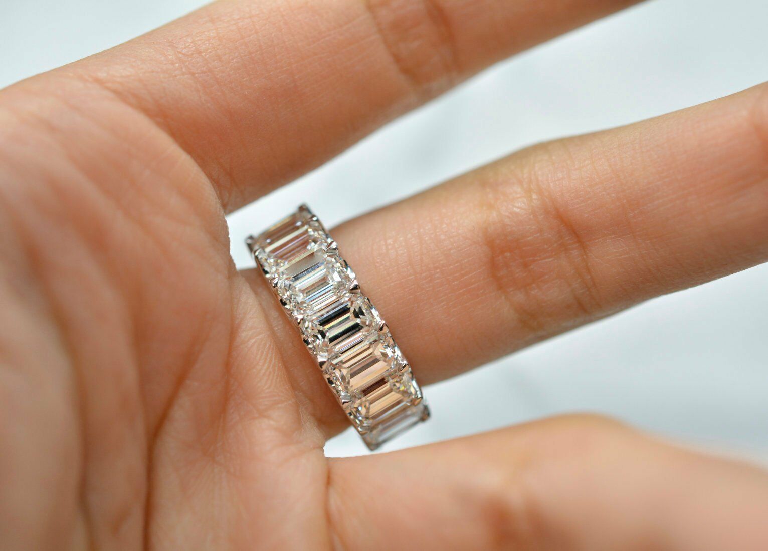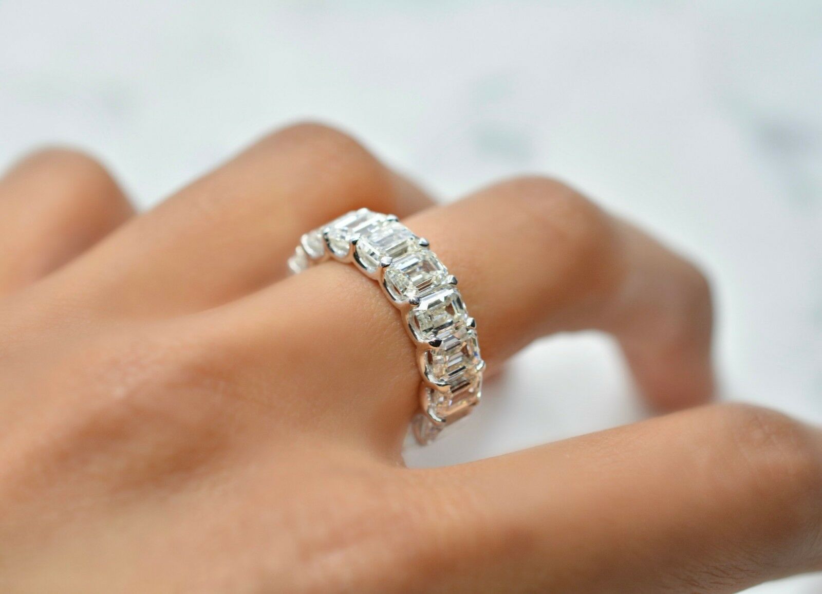 3ct Emerald Cut Diamond Gatsby Eternity Wedding Ring Band 14k White Gold Finish